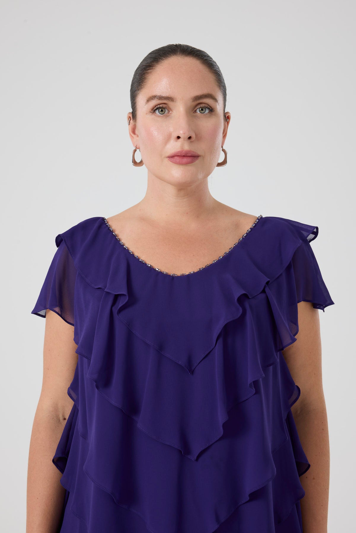 Bu şık ve zarif elbise, şıklık arayan kadınların vazgeçilmezi olmaya aday! Siyah rengi ile klasik ve şık bir görünüm sunan elbise, fırfır detaylarıyla da dikkat çekiyor. Katlı kesimi sayesinde vücudu saran ve beli saran kesimde olan bu elbise, her vücut tipine uyum sağlayacak şekilde tasarlanmıştır.