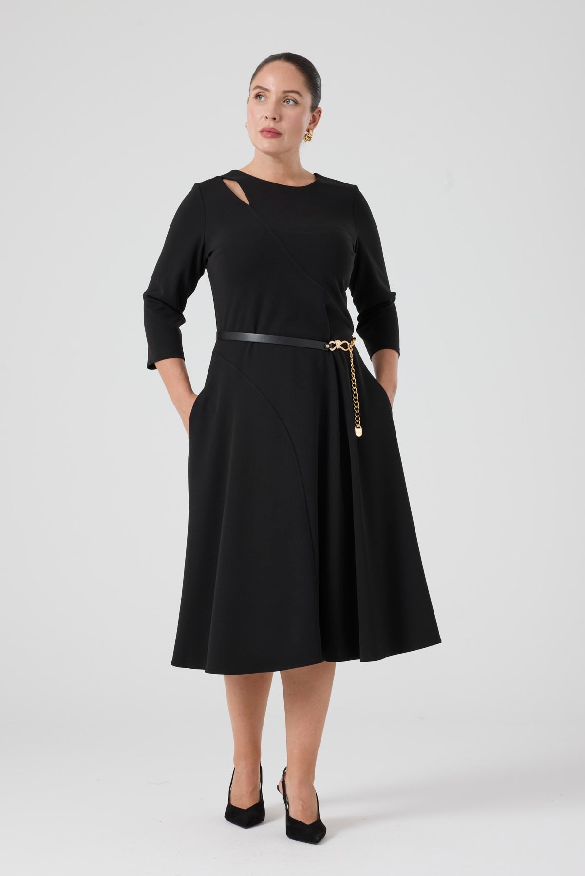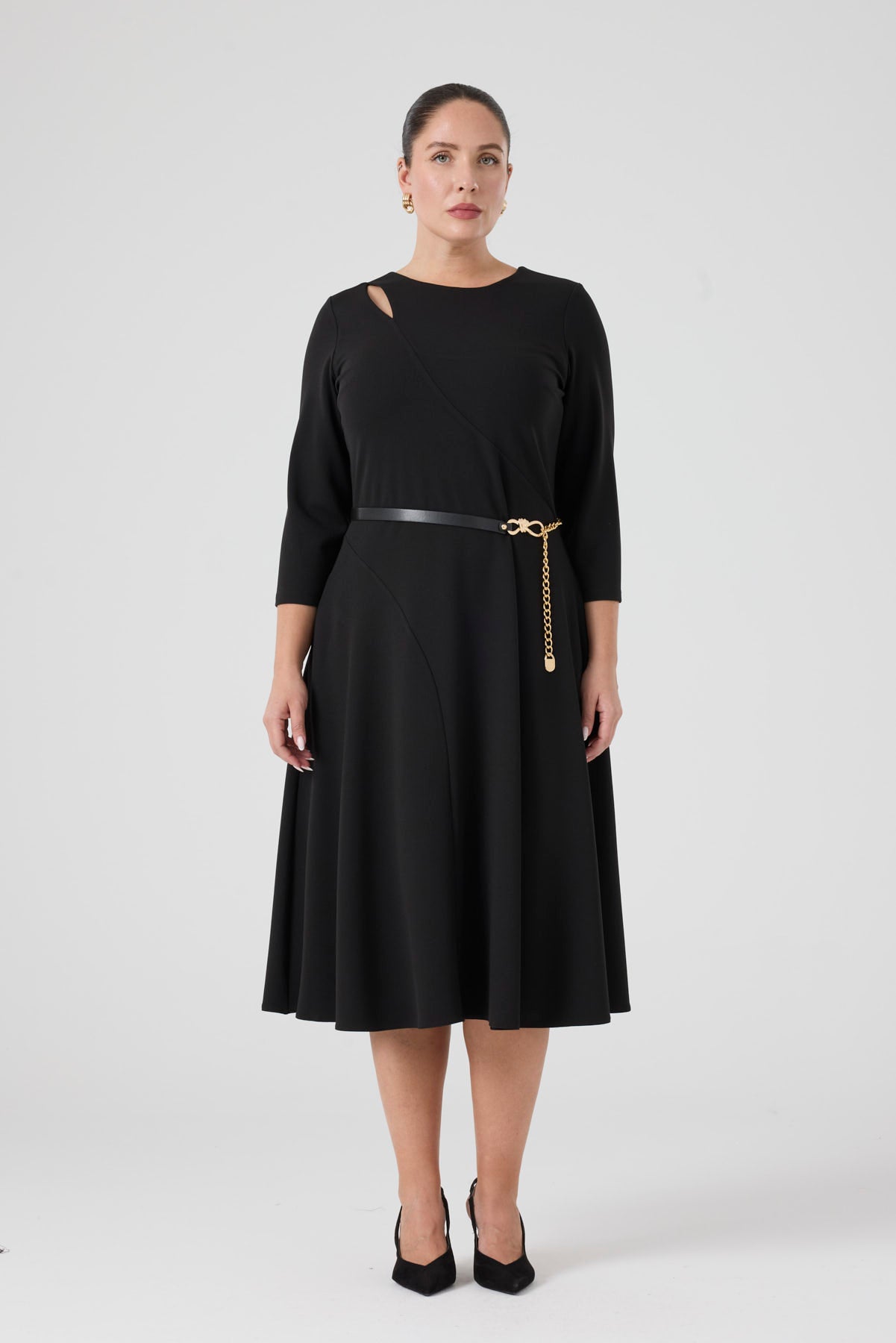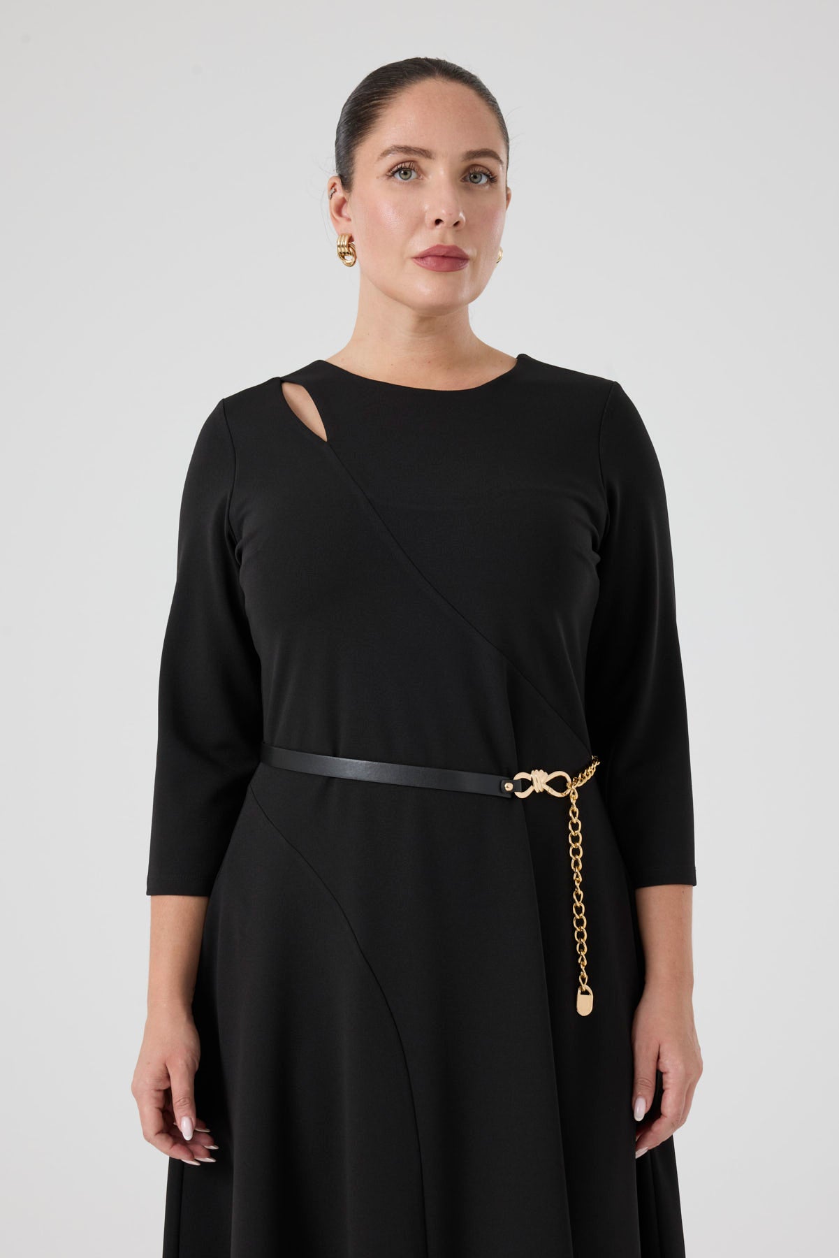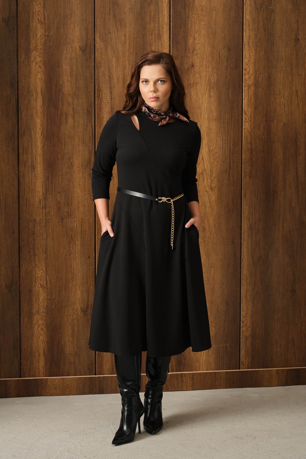 Damla Dekolteli Kemerli Örme Elbise Siyah