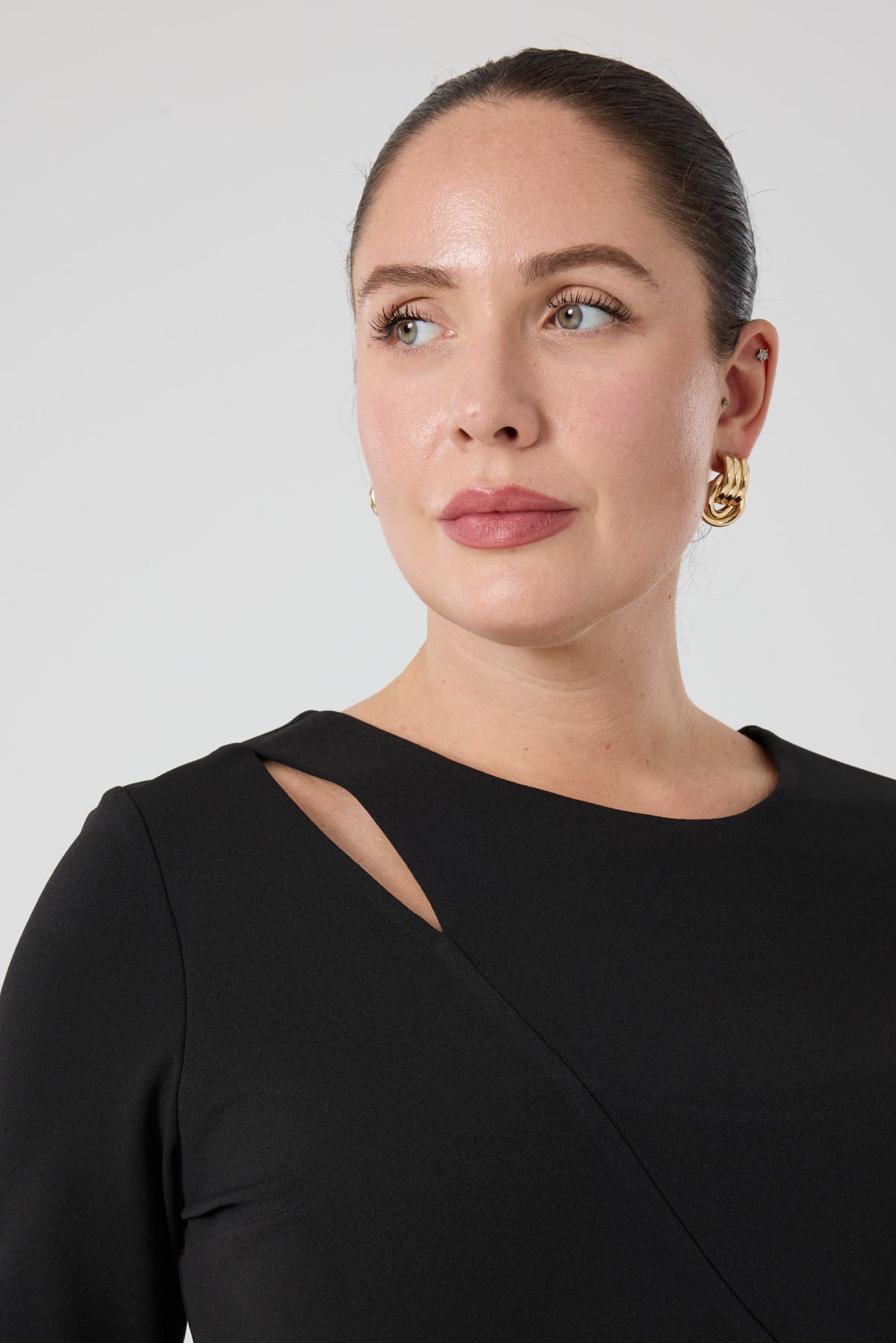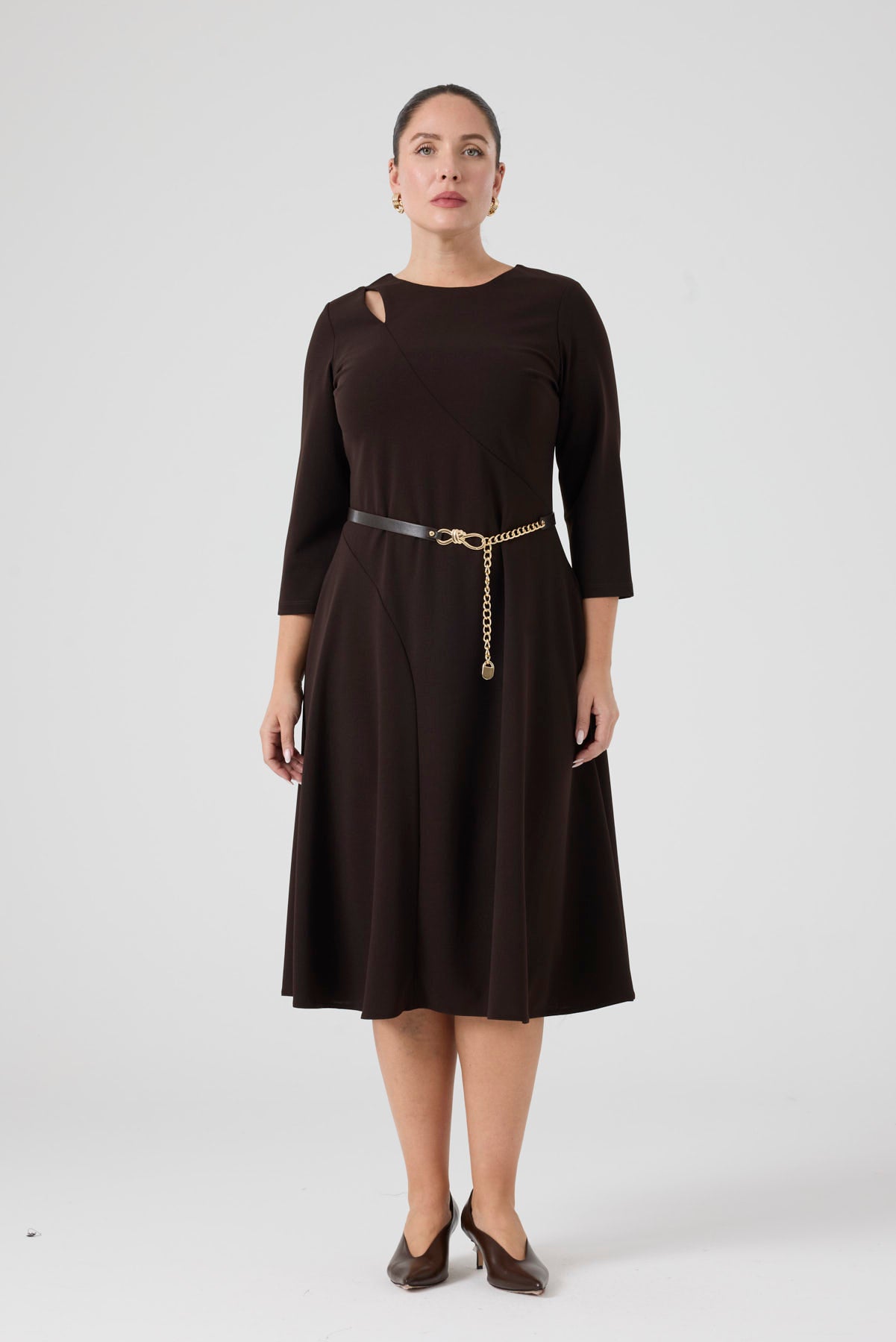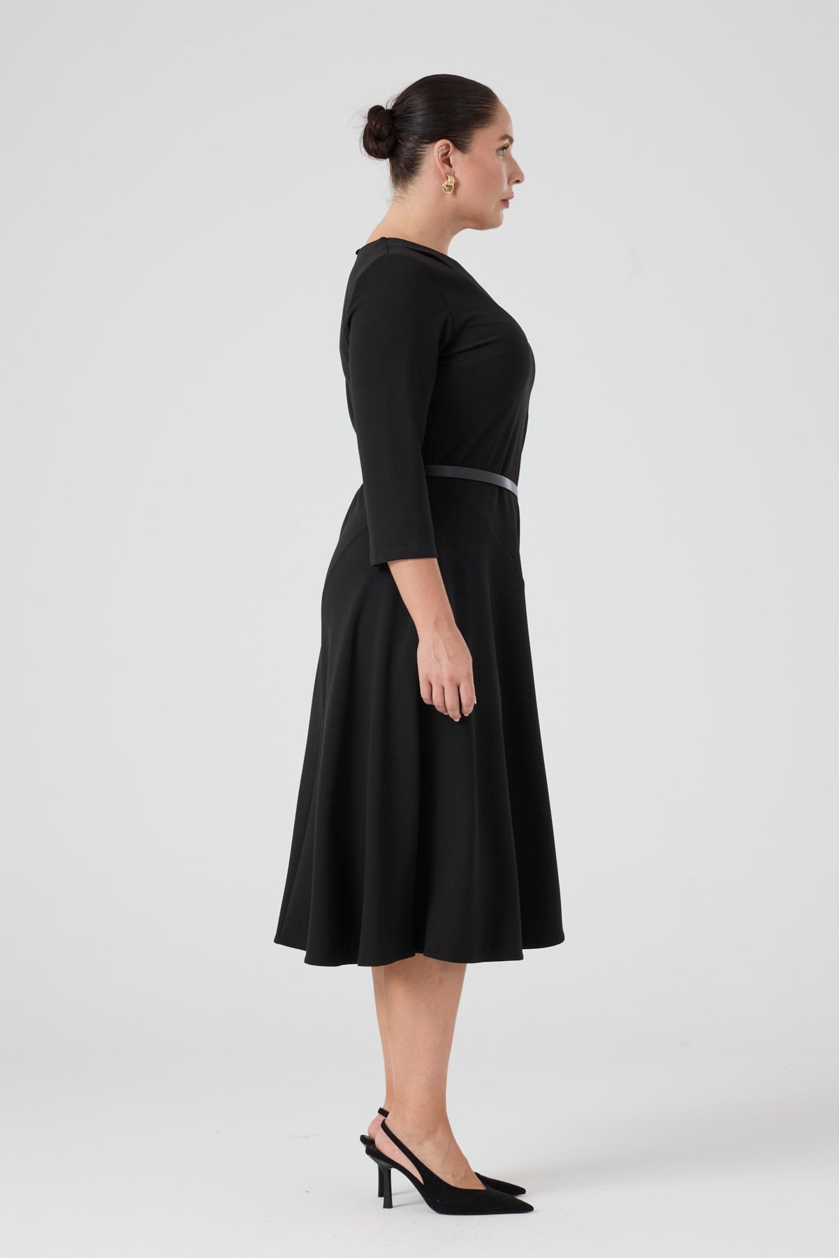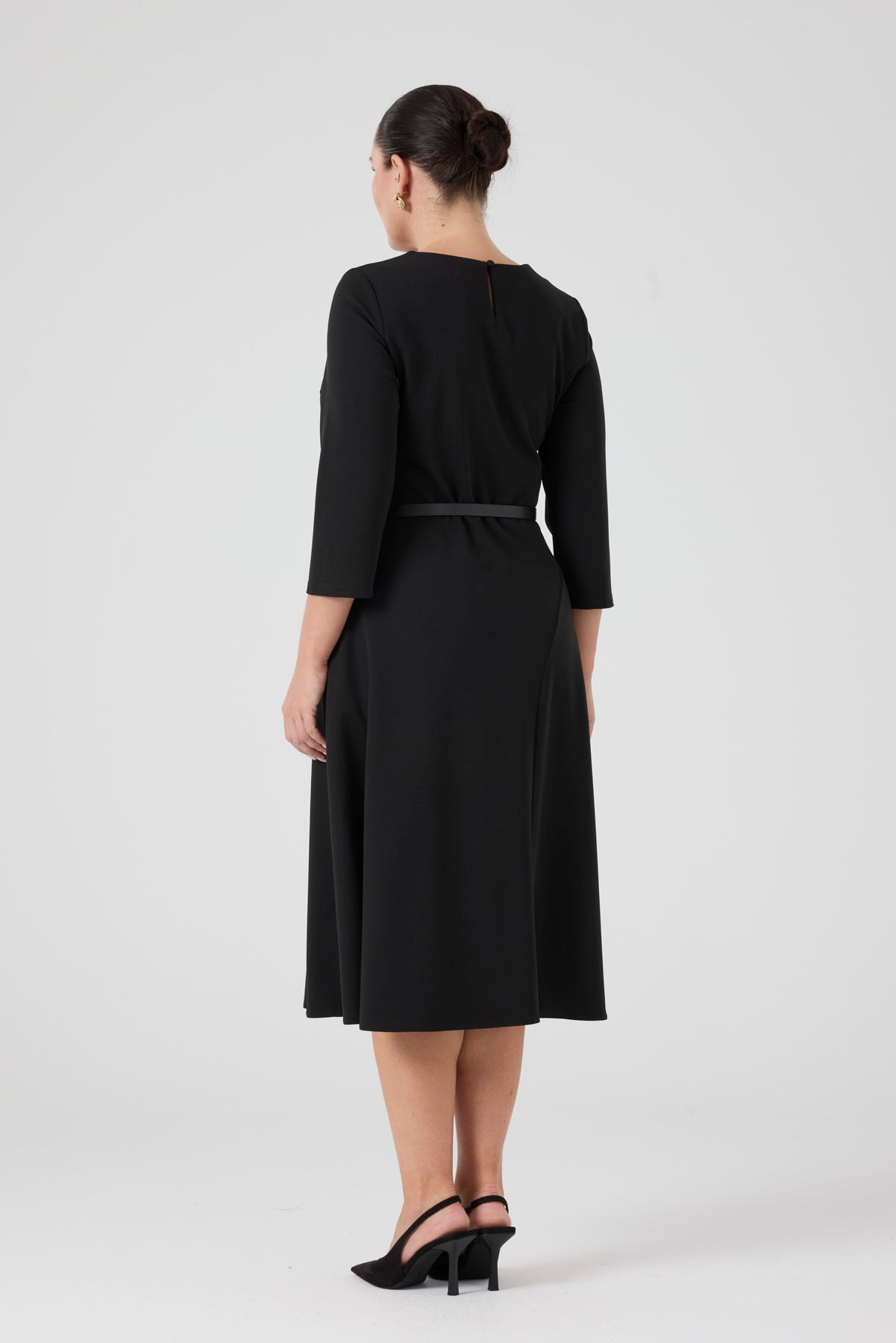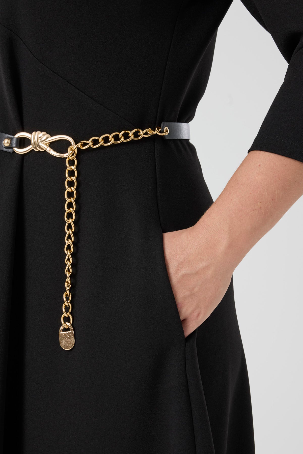 Damla Dekolteli Kemerli Örme Elbise Siyah