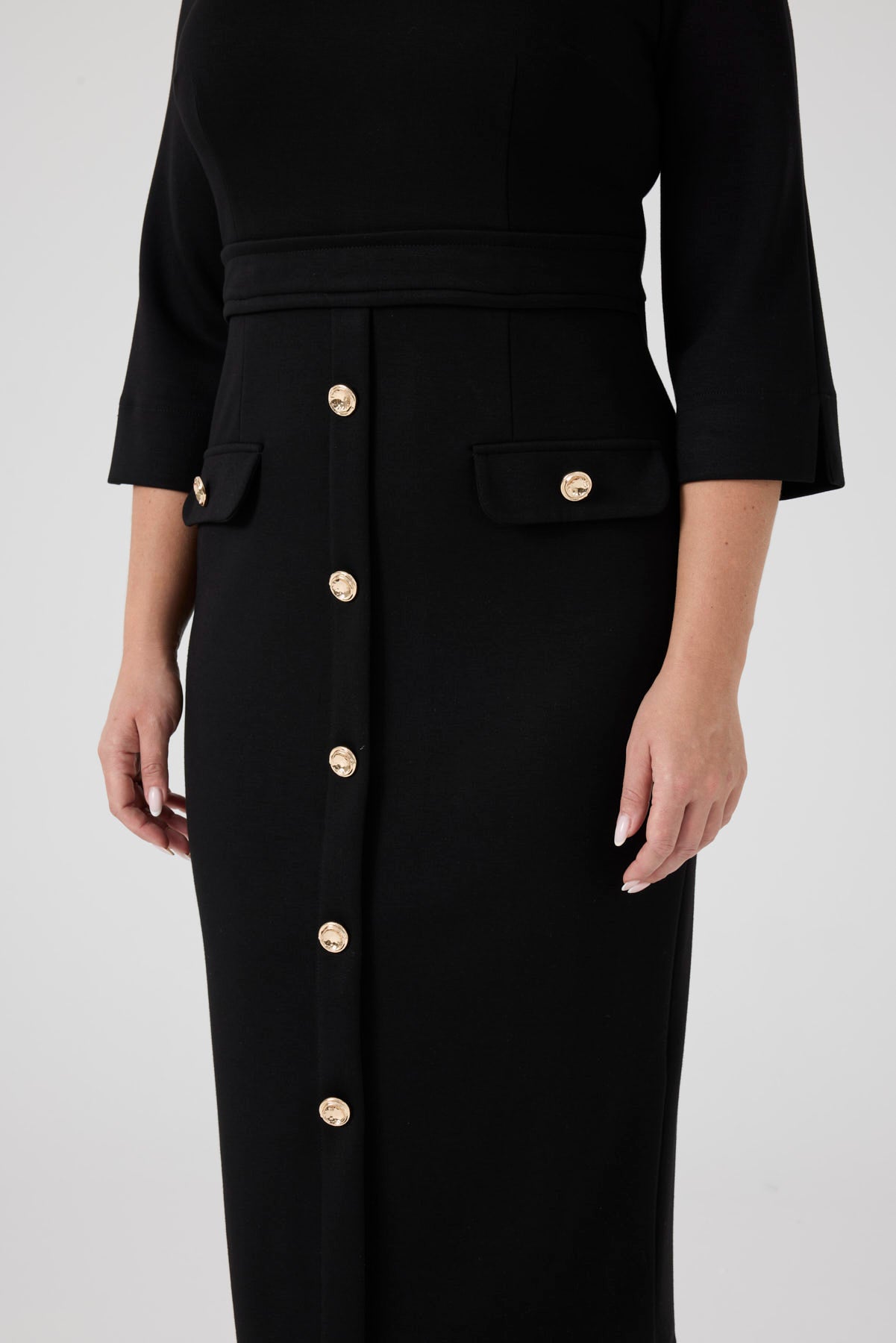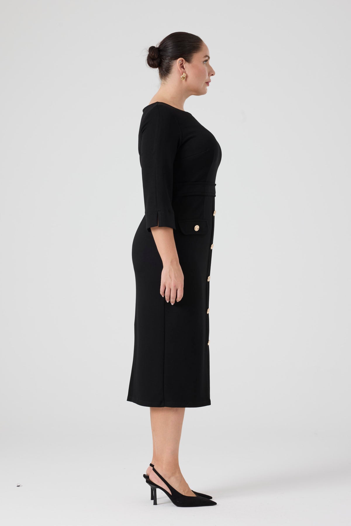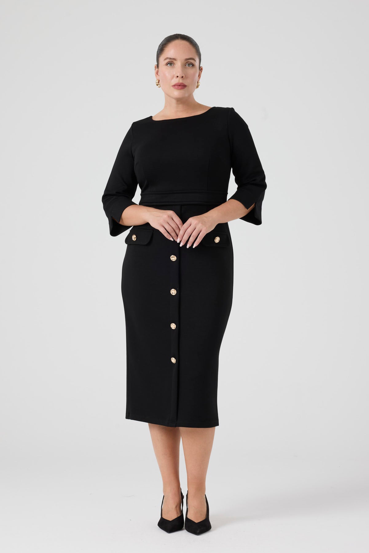 Düğme Detaylı Örme Elbise Siyah