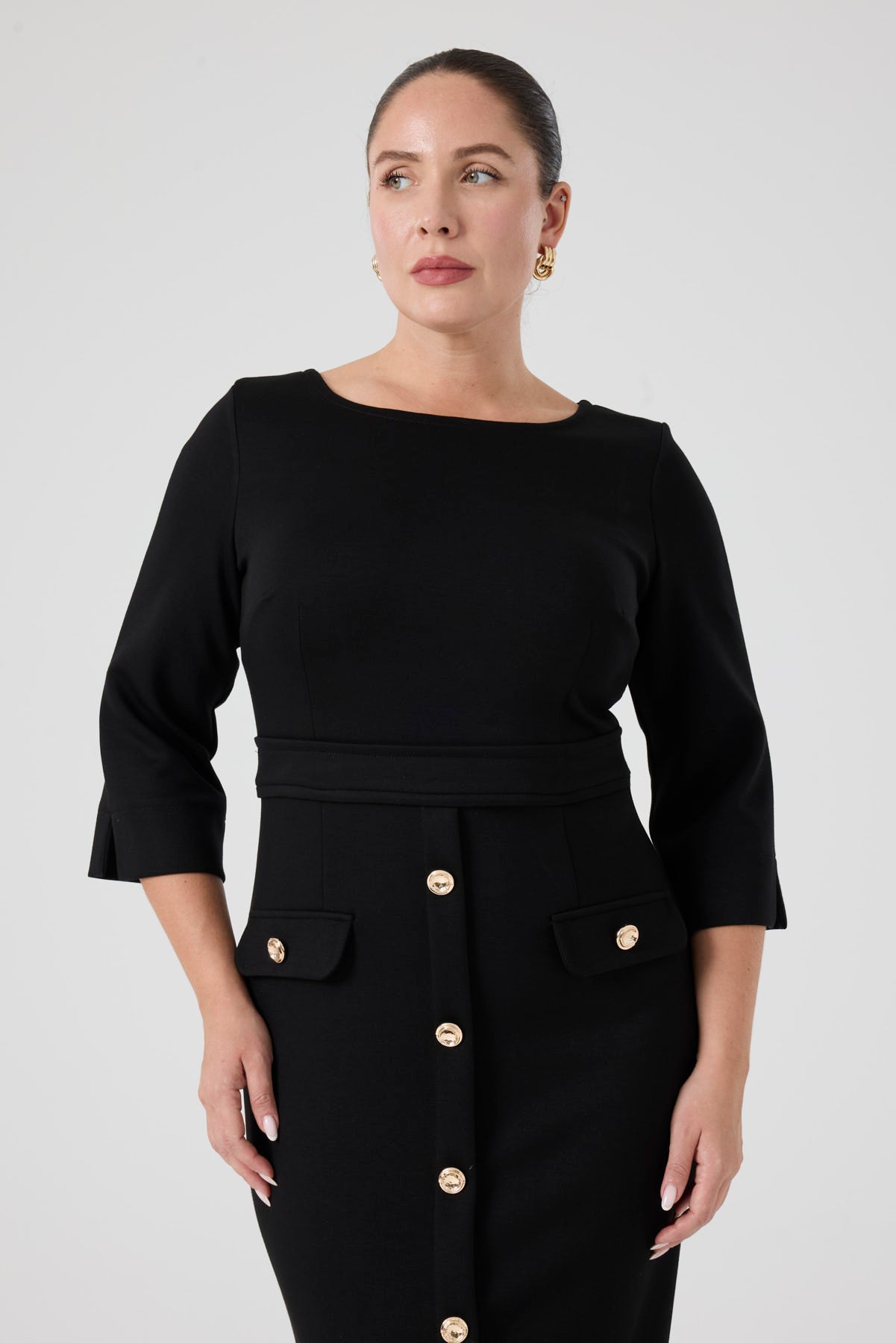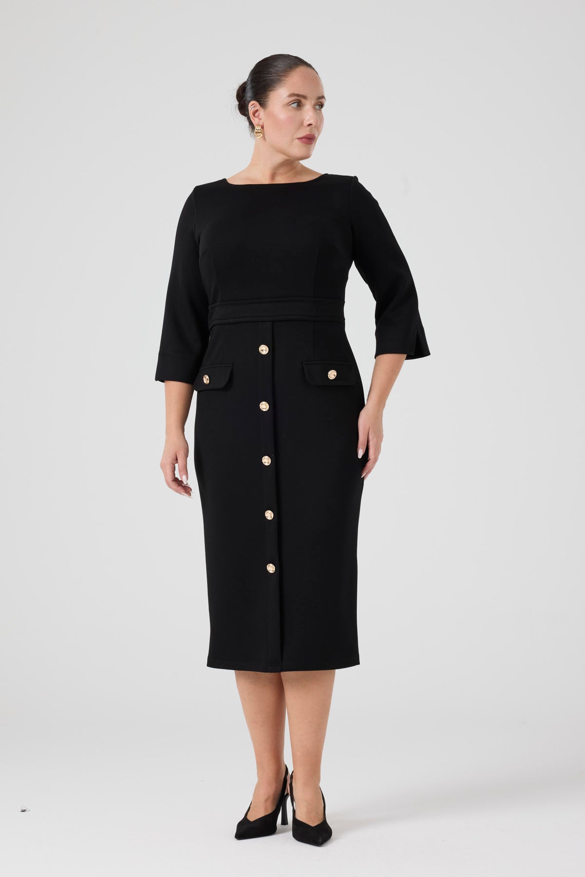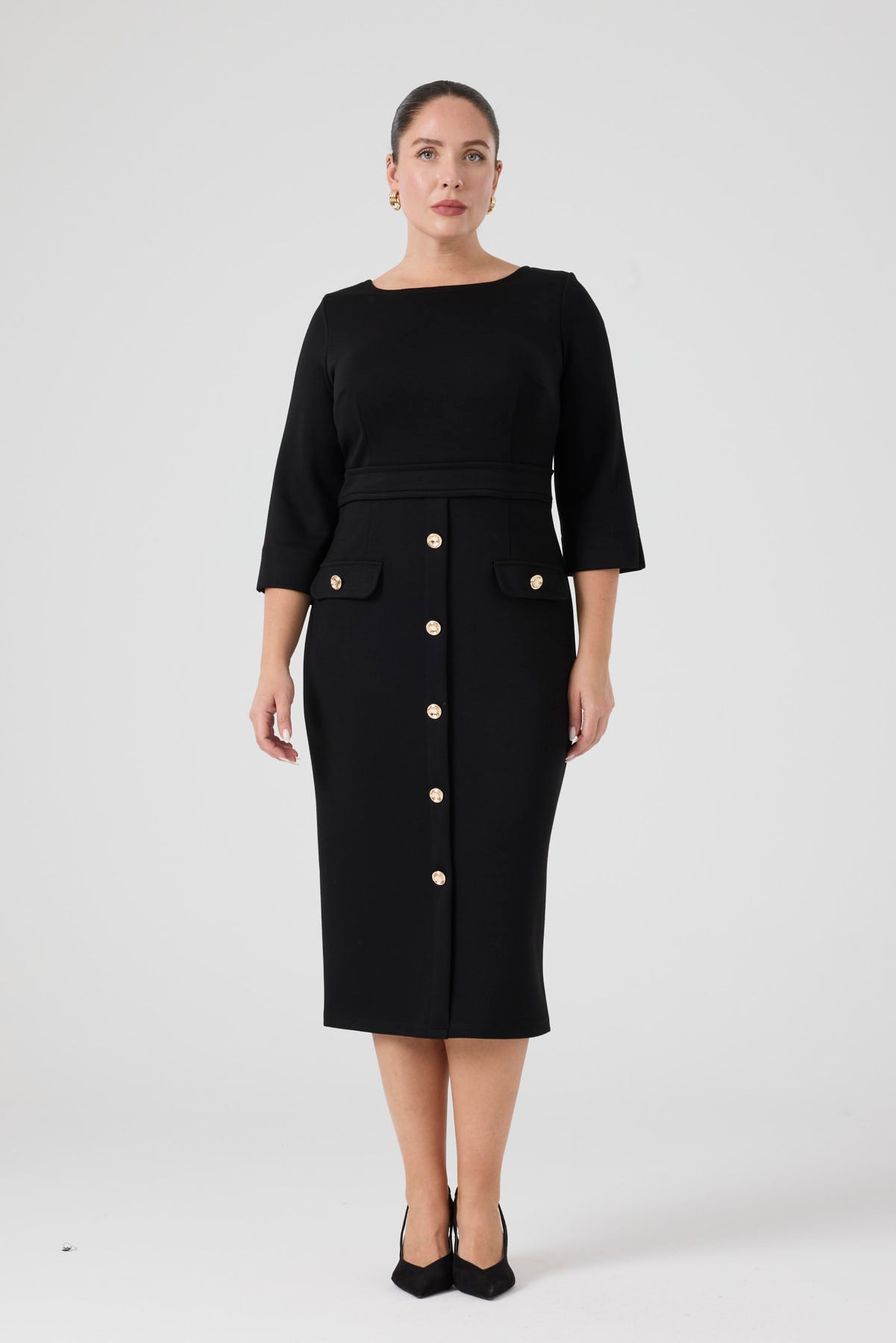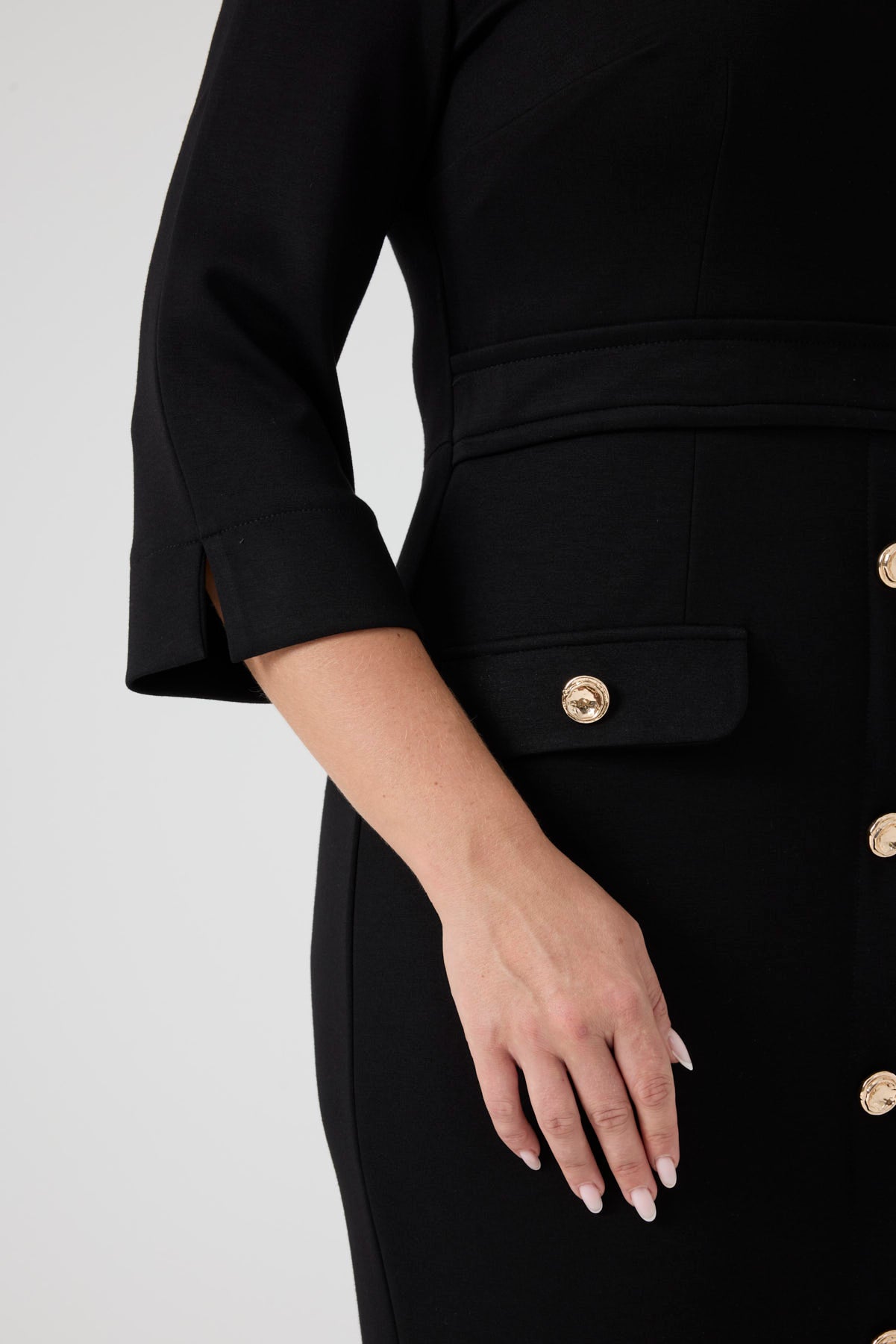 Düğme Detaylı Örme Elbise Siyah