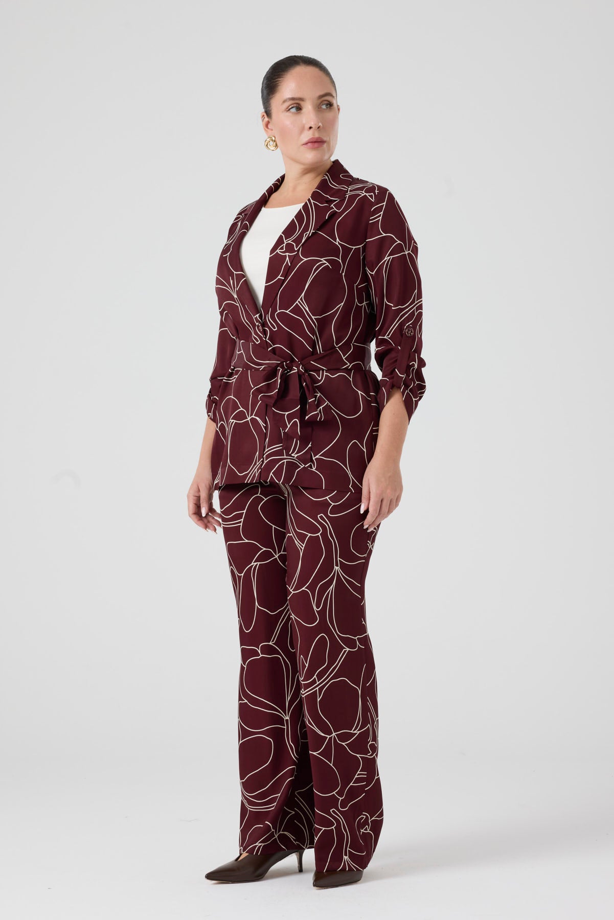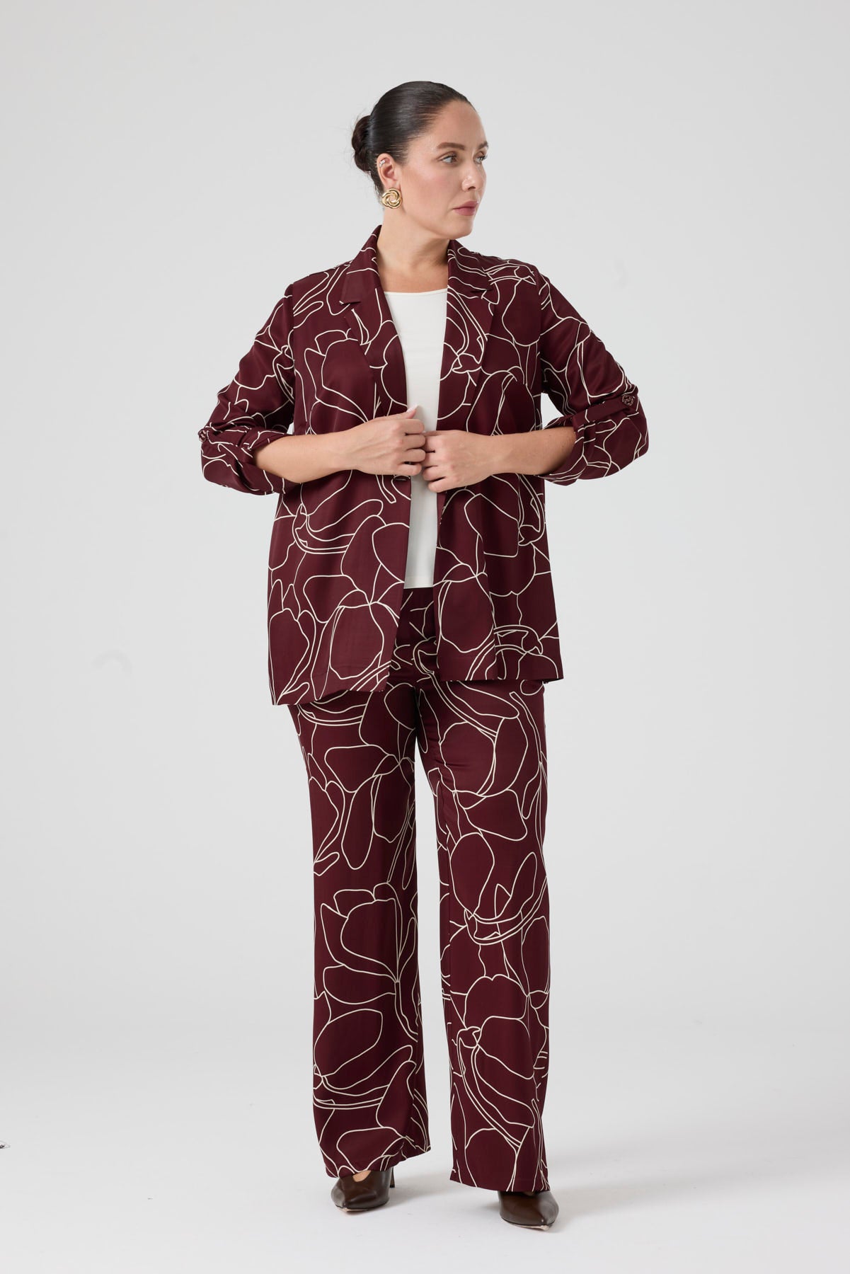 Ceket ve pantolon floş viskon kumaştan üretilmiştir.