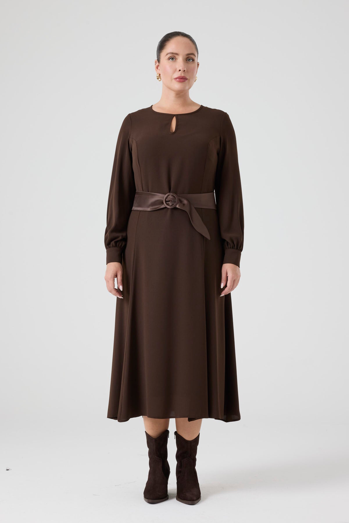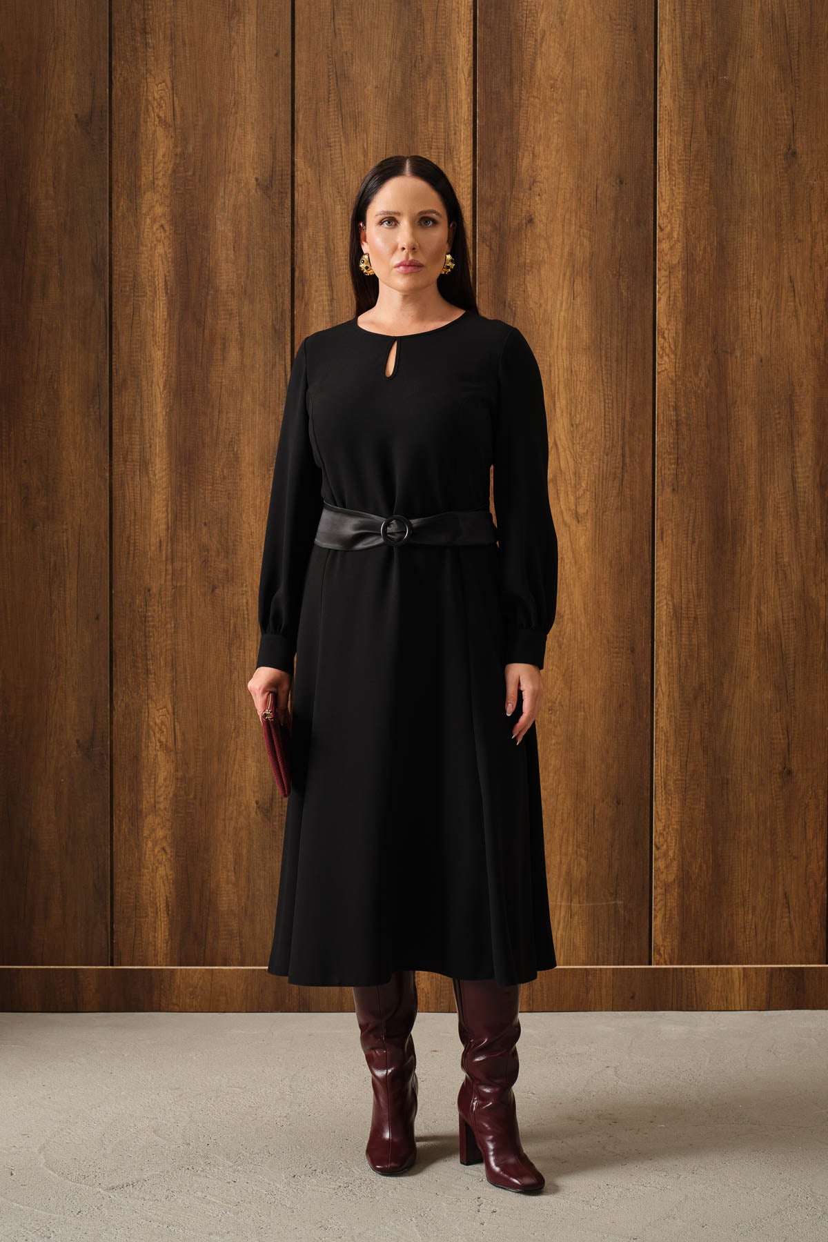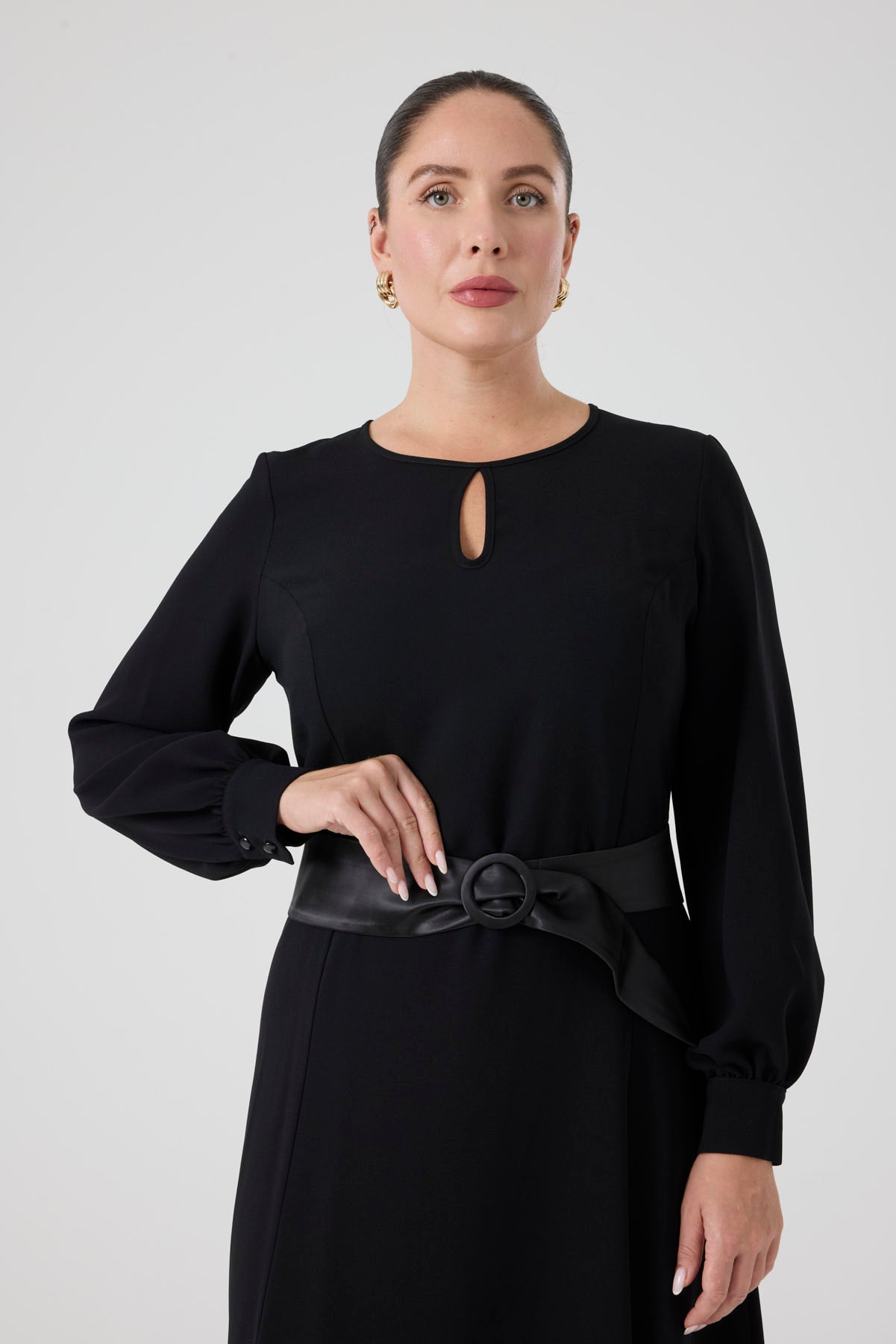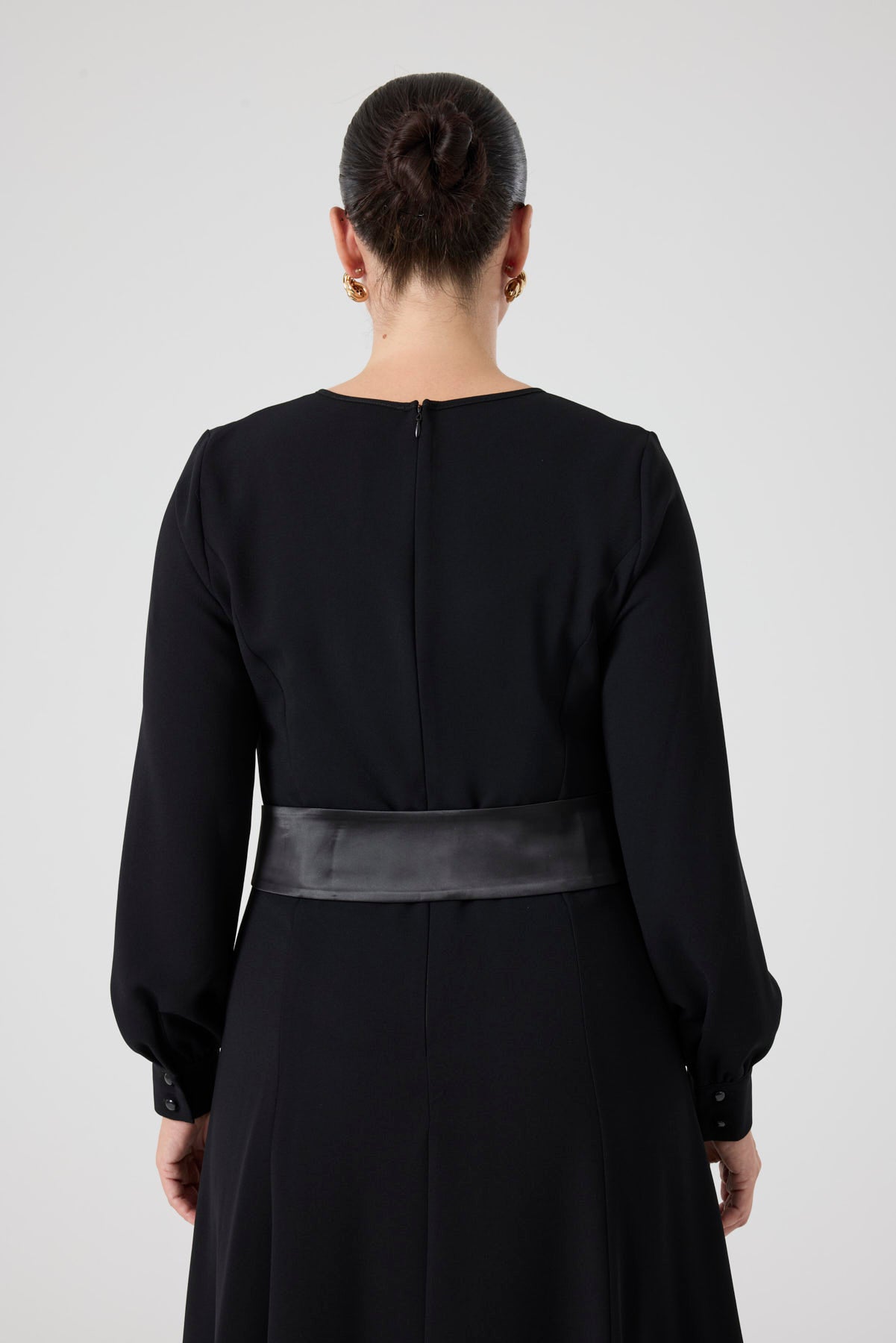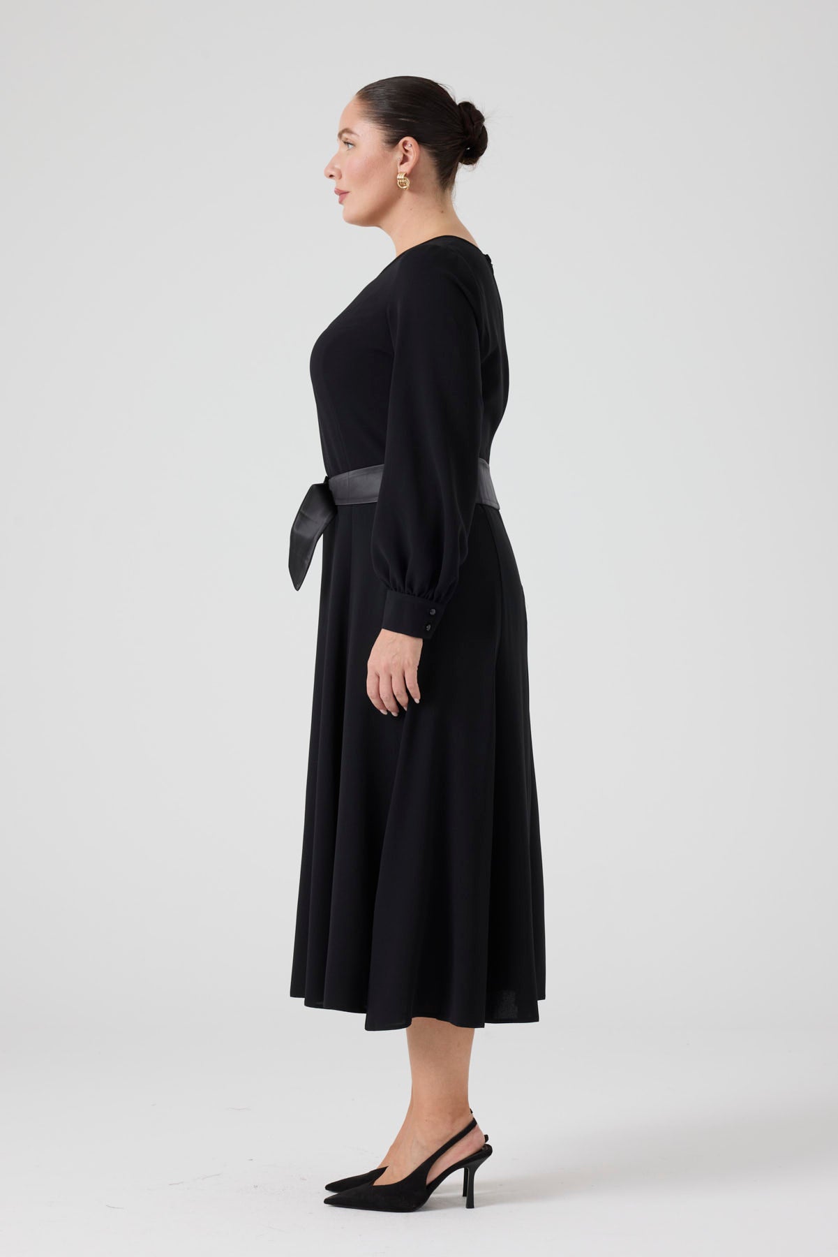 Saten Kemerli Kloş Elbise Siyah