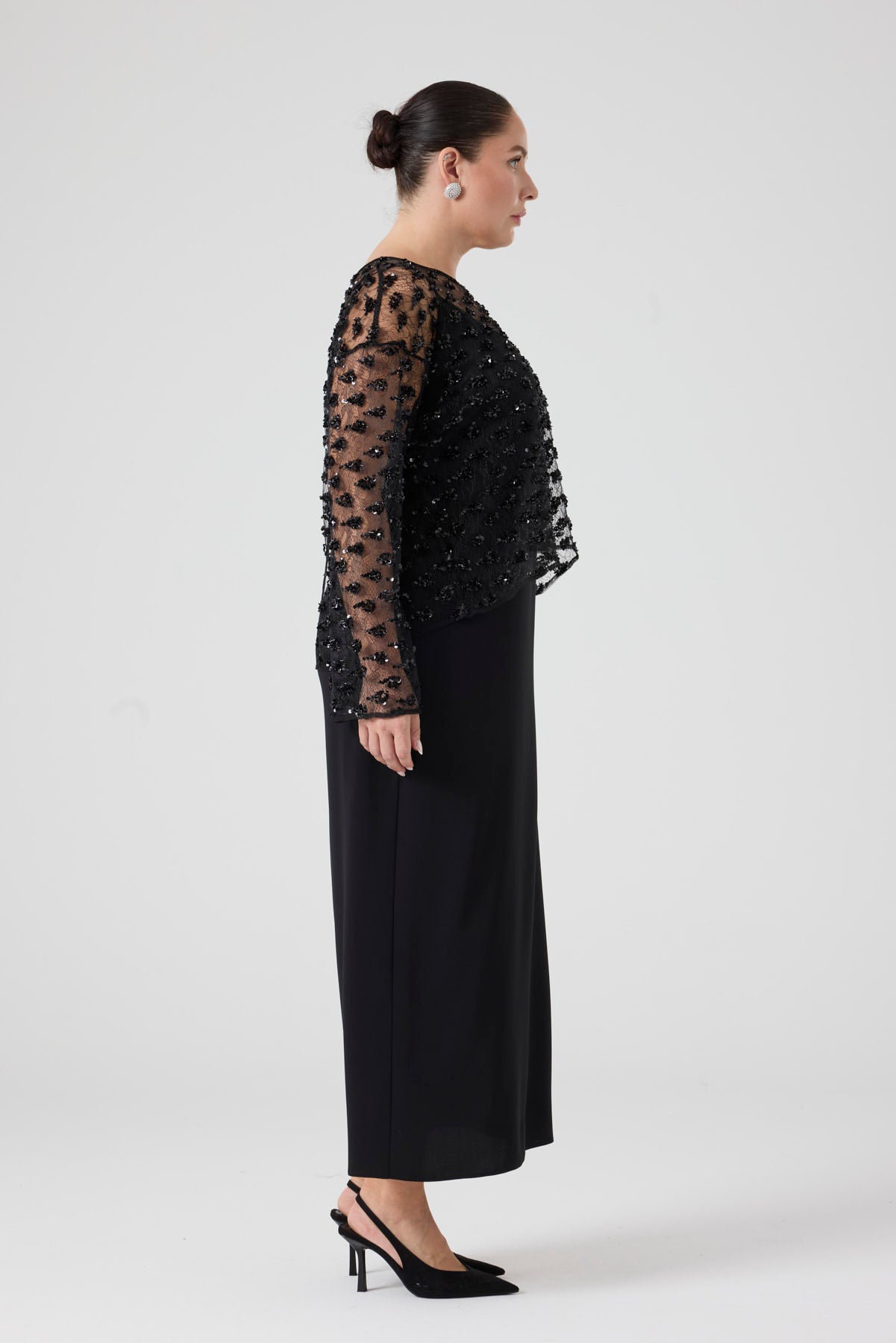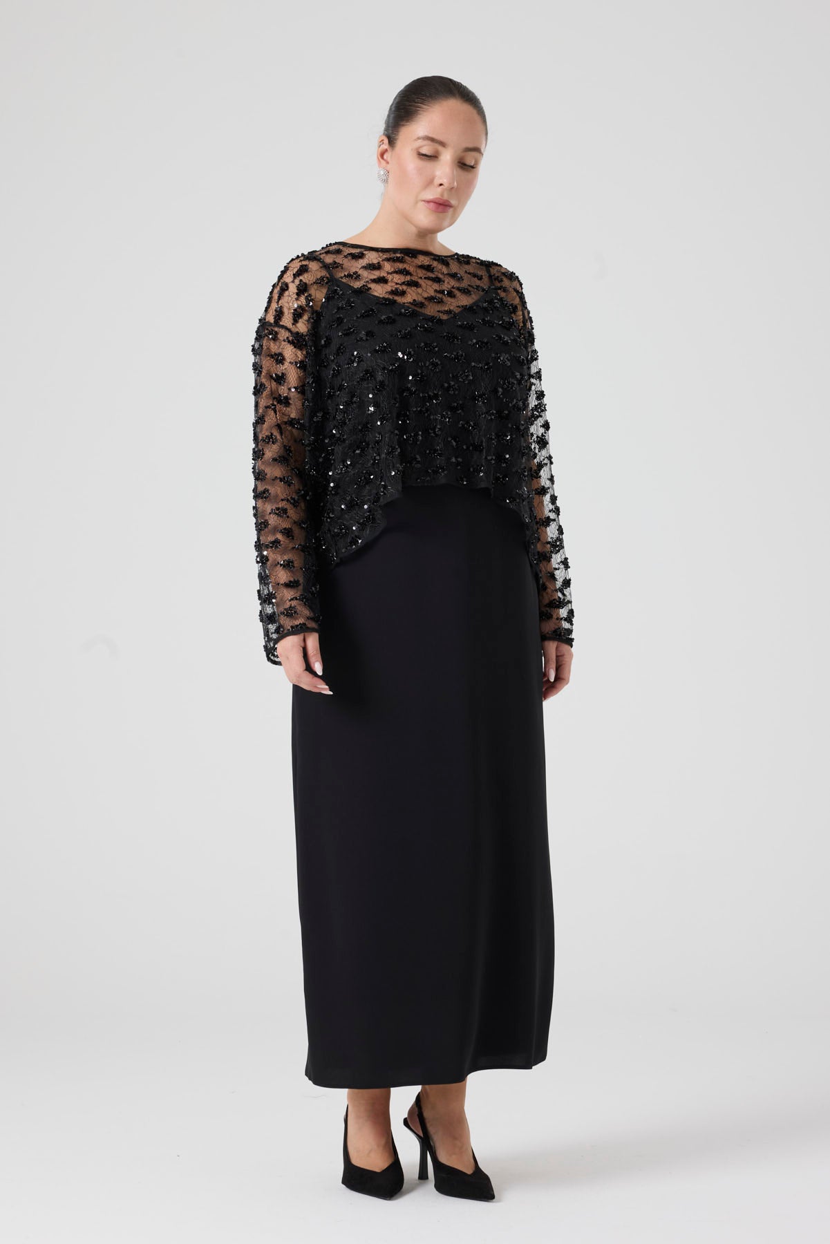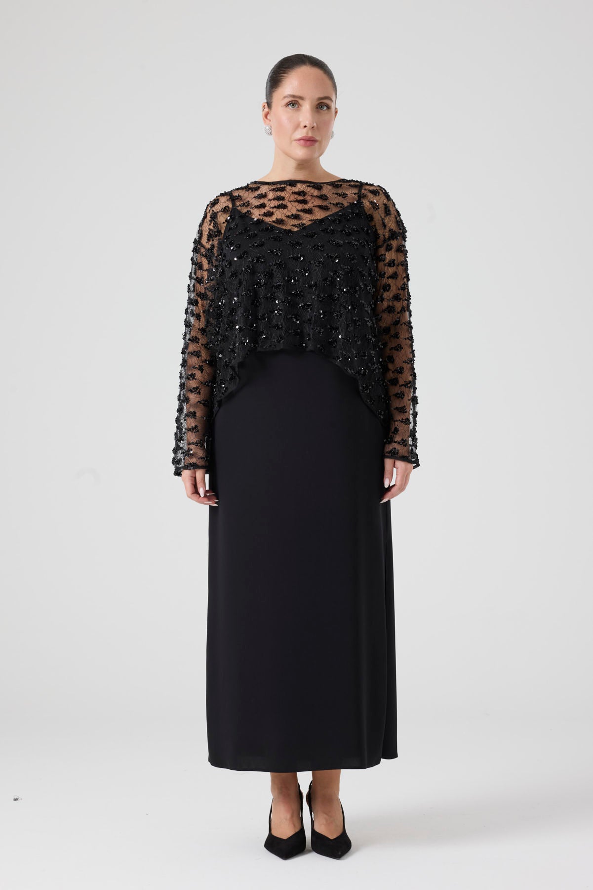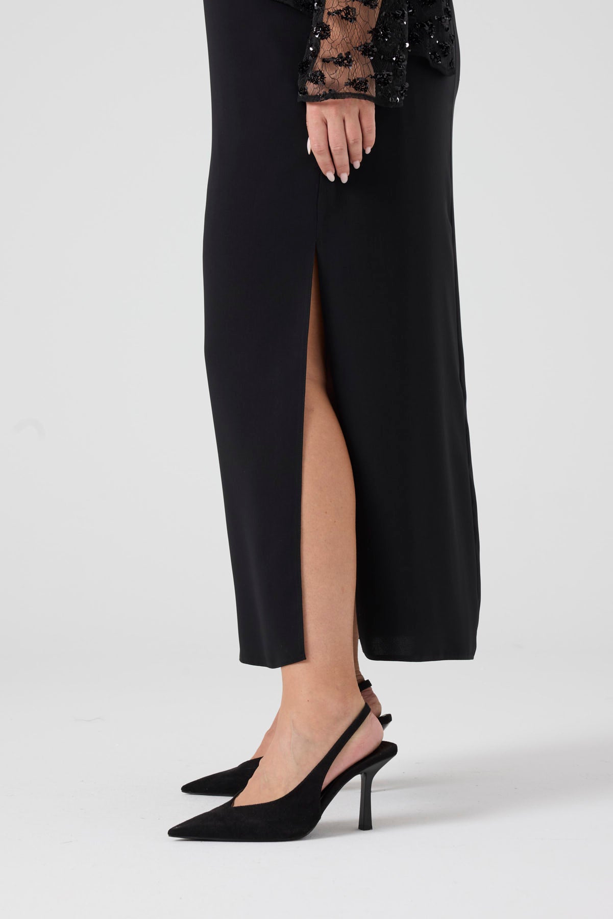 Payet Bluz - Uzun Yırtmaçlı Elbise İkili Takım Siyah