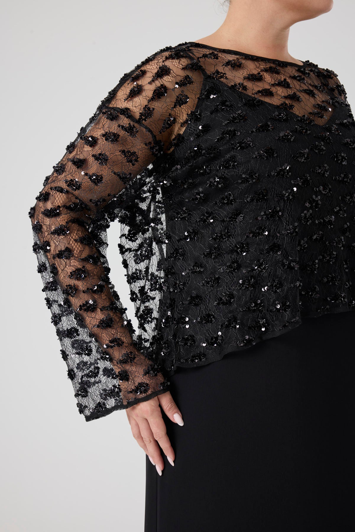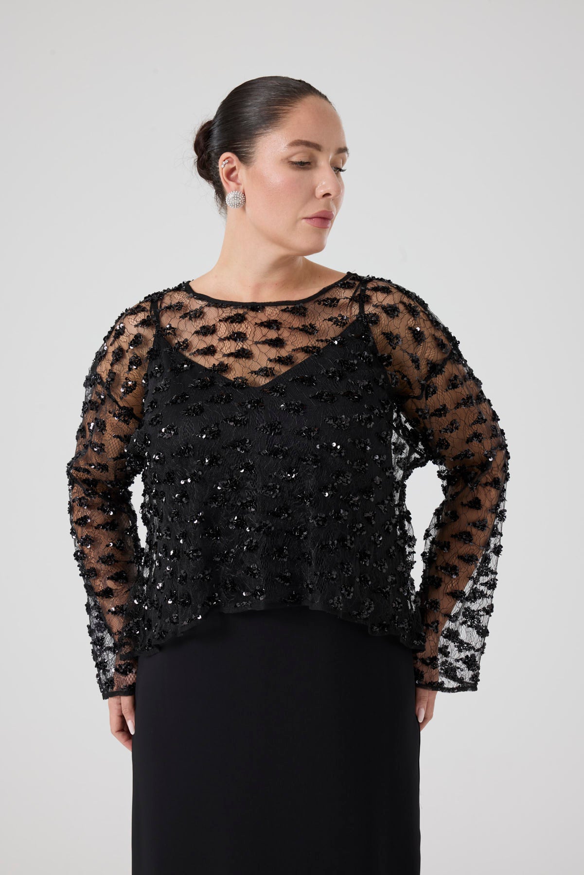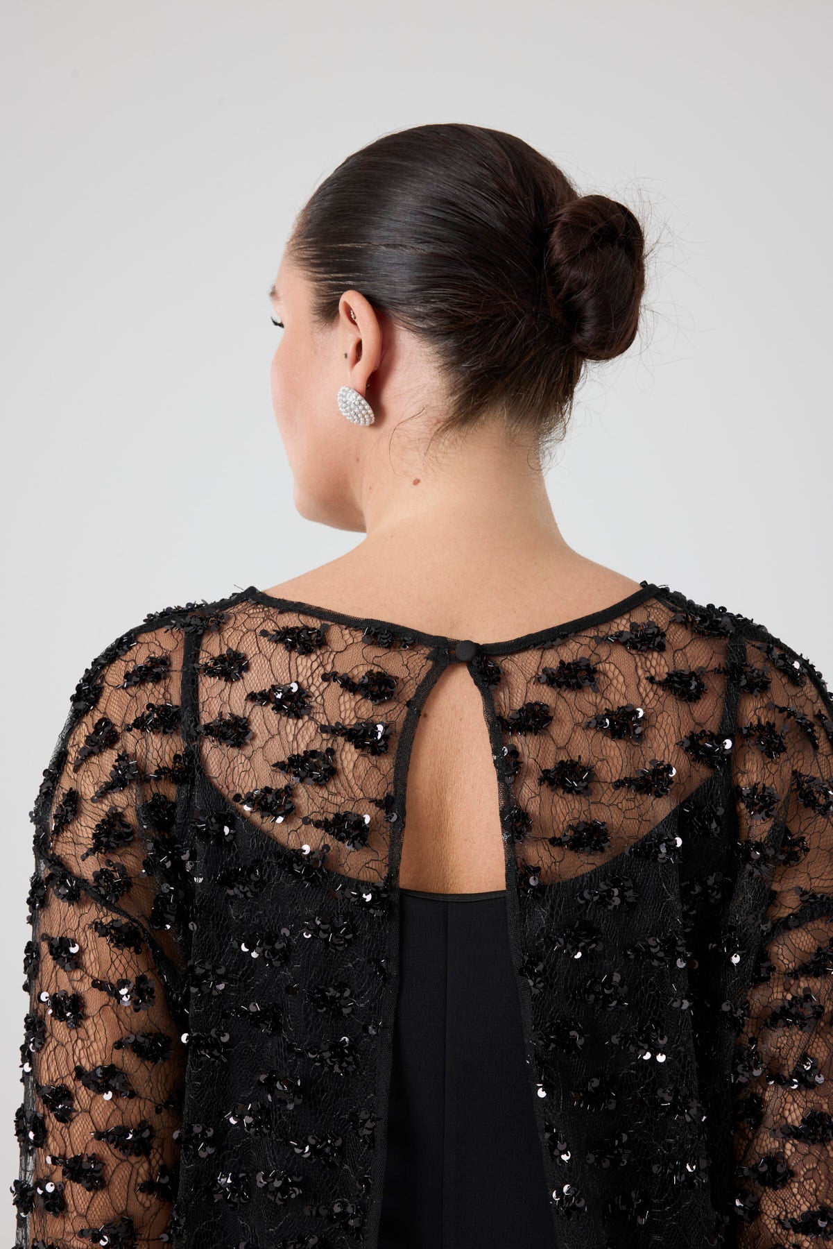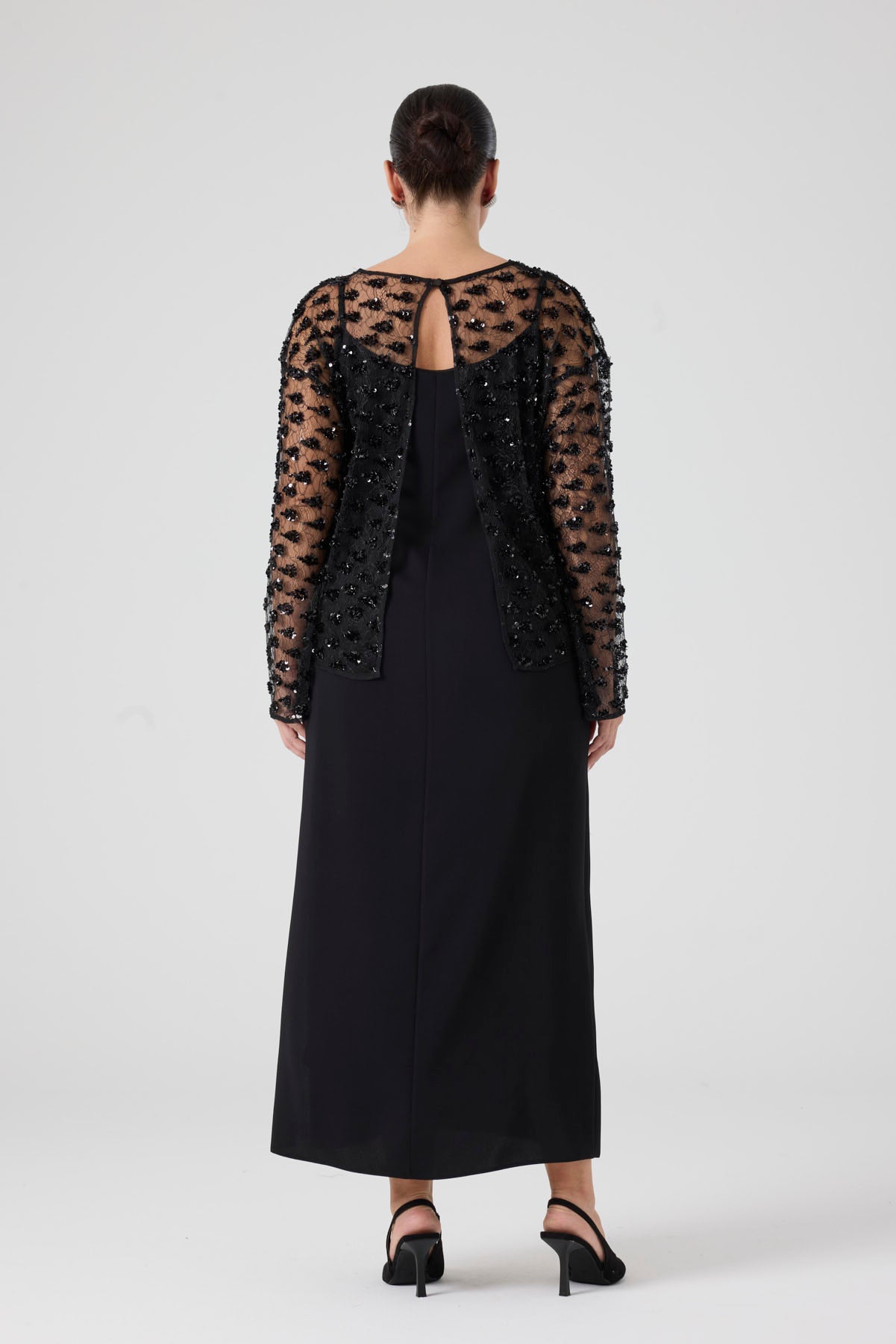 Payet Bluz - Uzun Yırtmaçlı Elbise İkili Takım Siyah