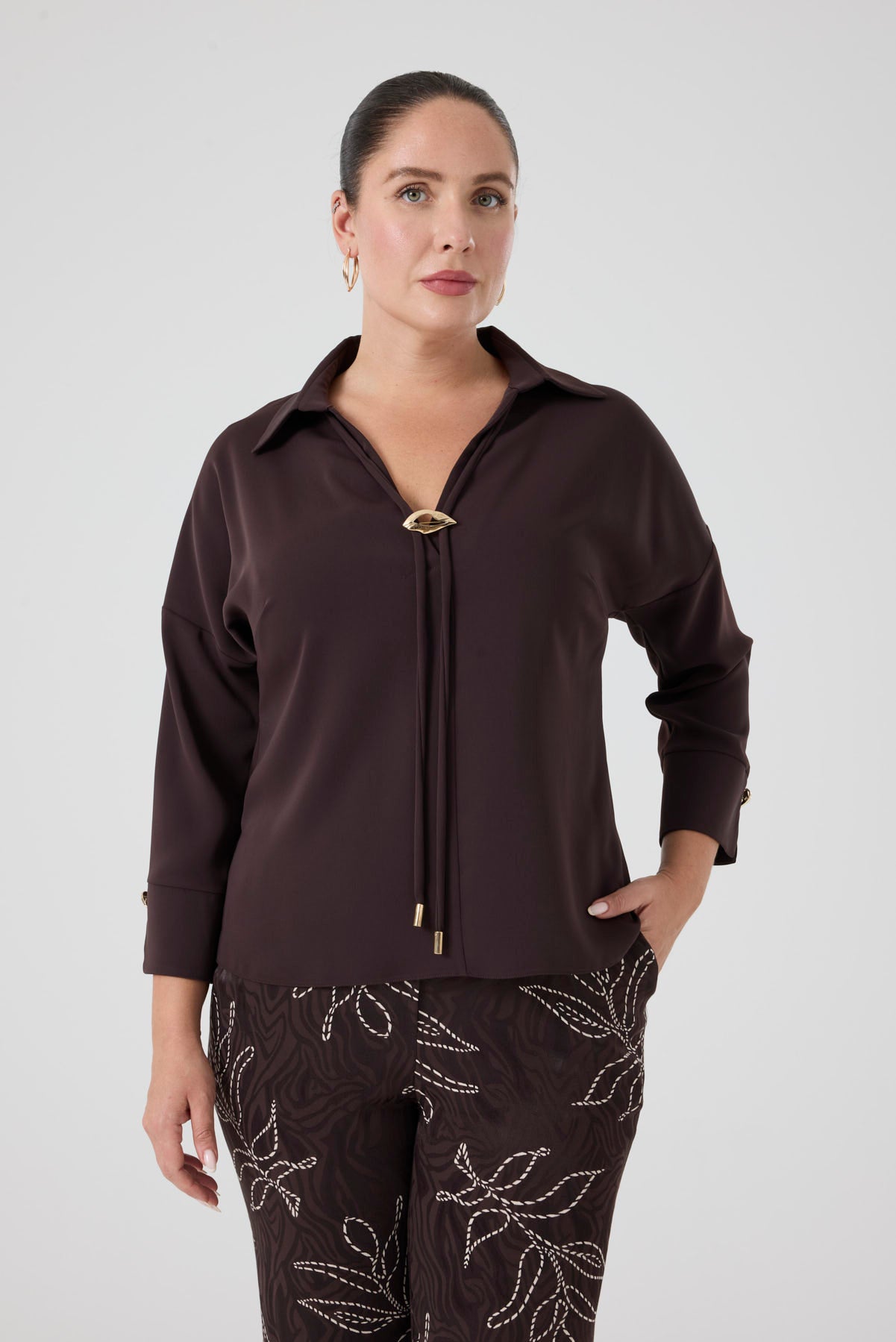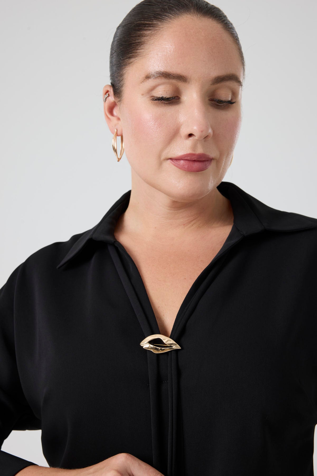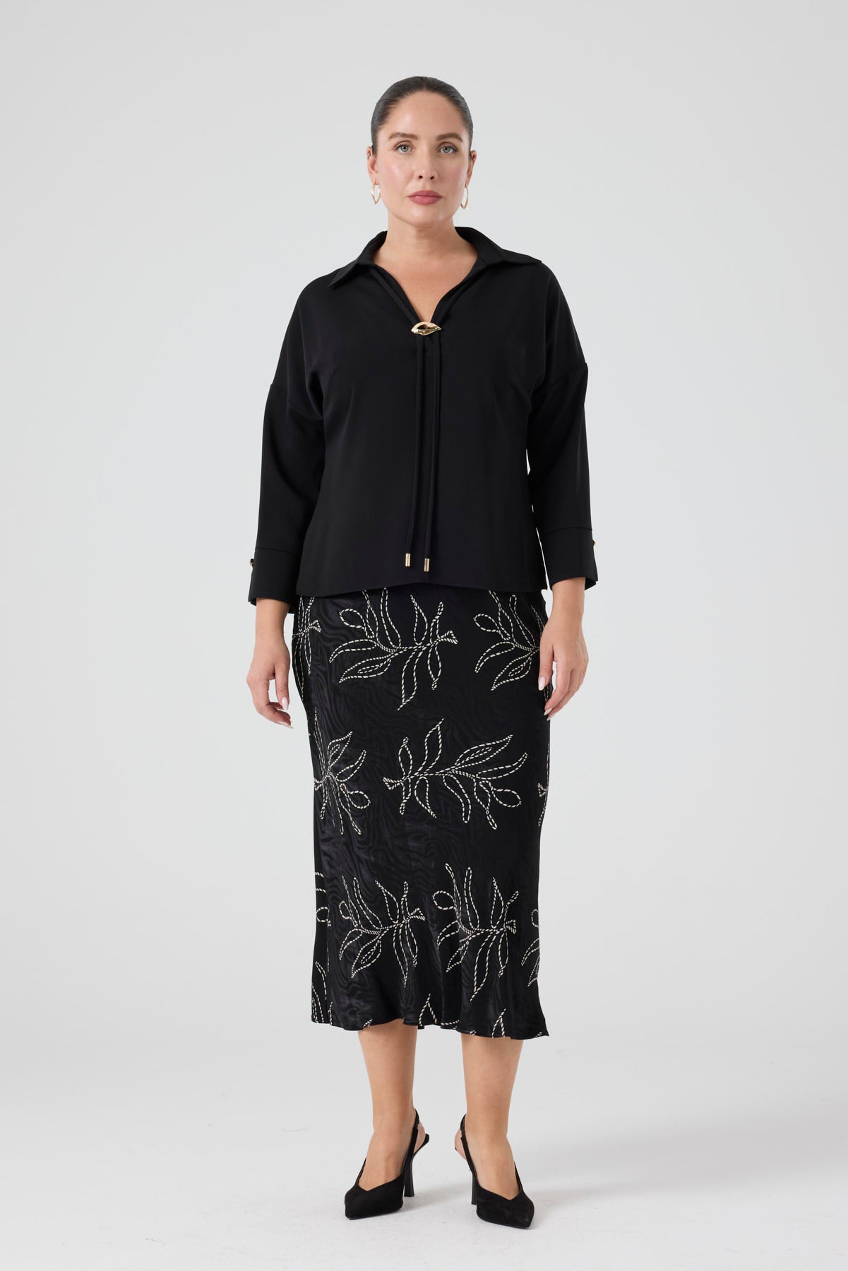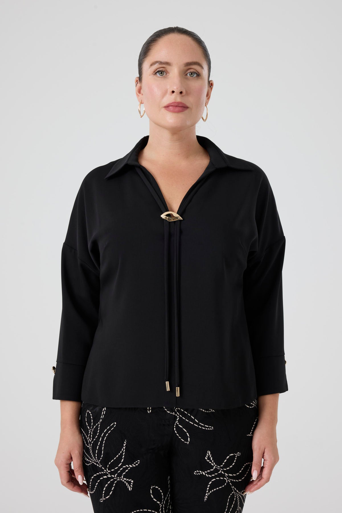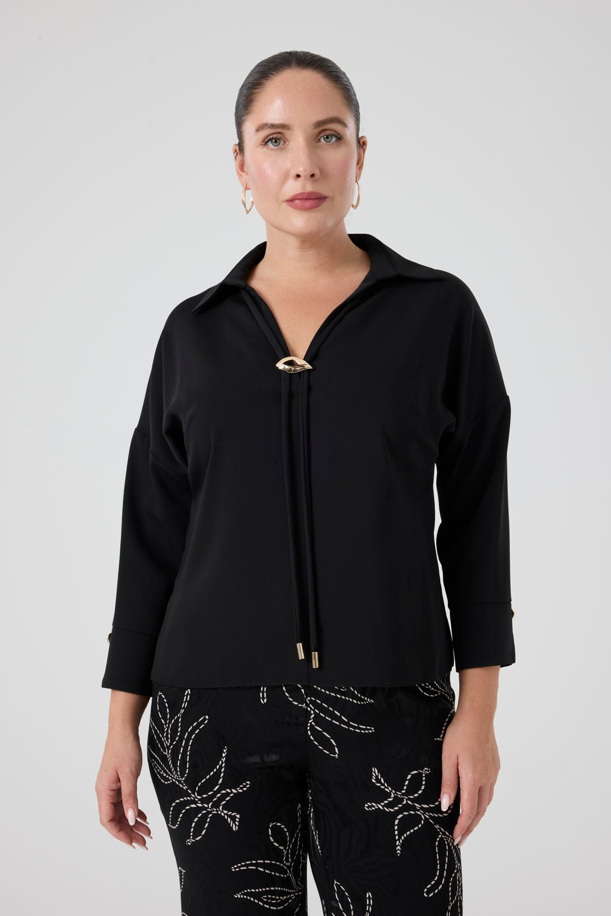 Gömlek Yaka Aksesuarlı Bluz Siyah