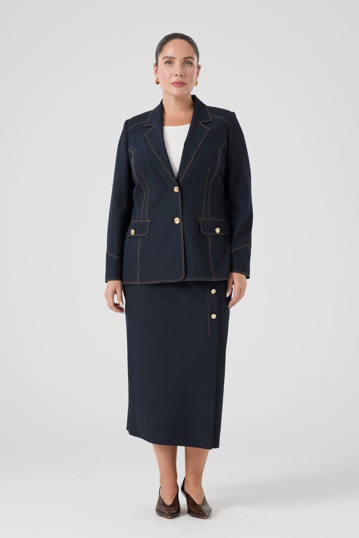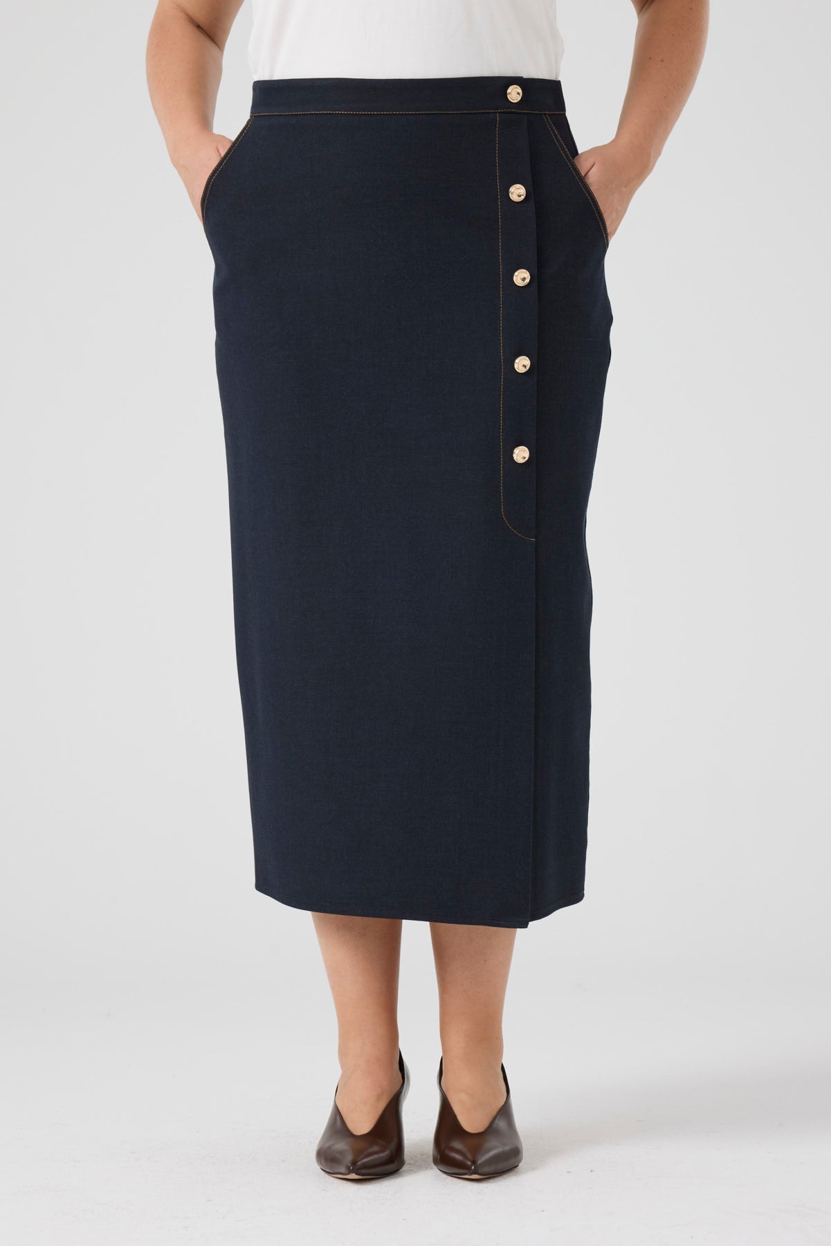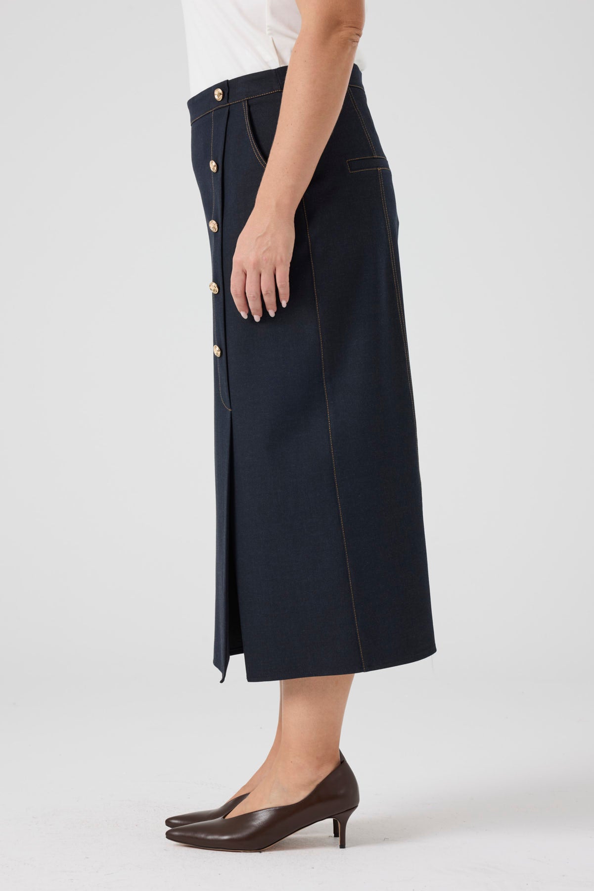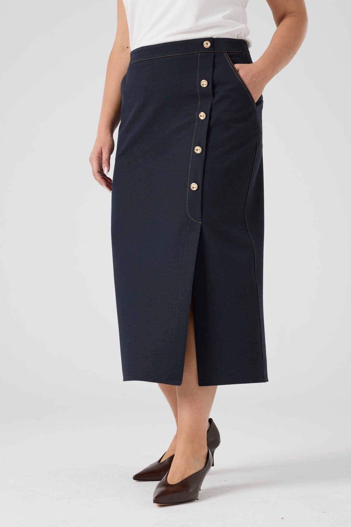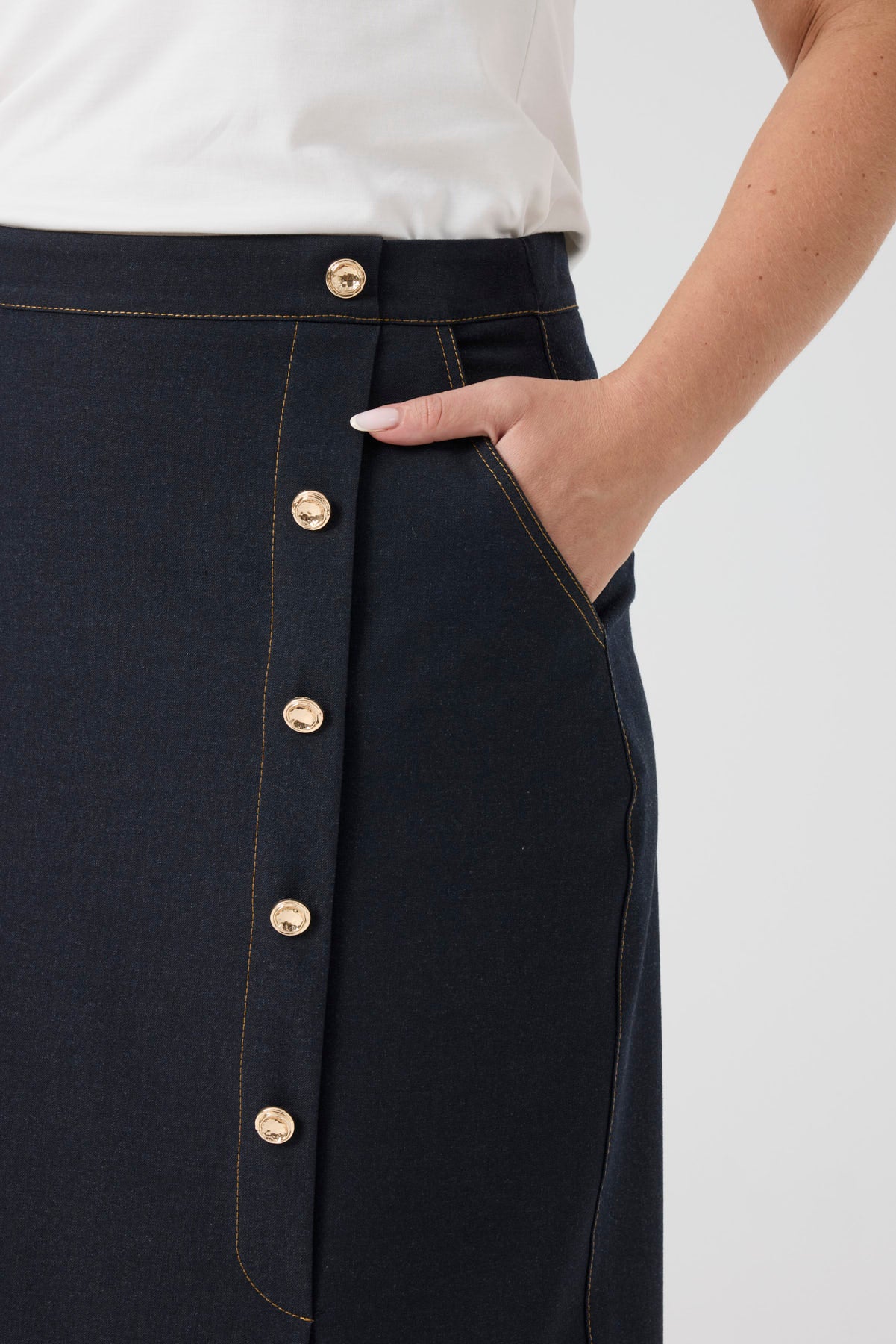 Düğme Detaylı Likralı Kot Etek Lacivert