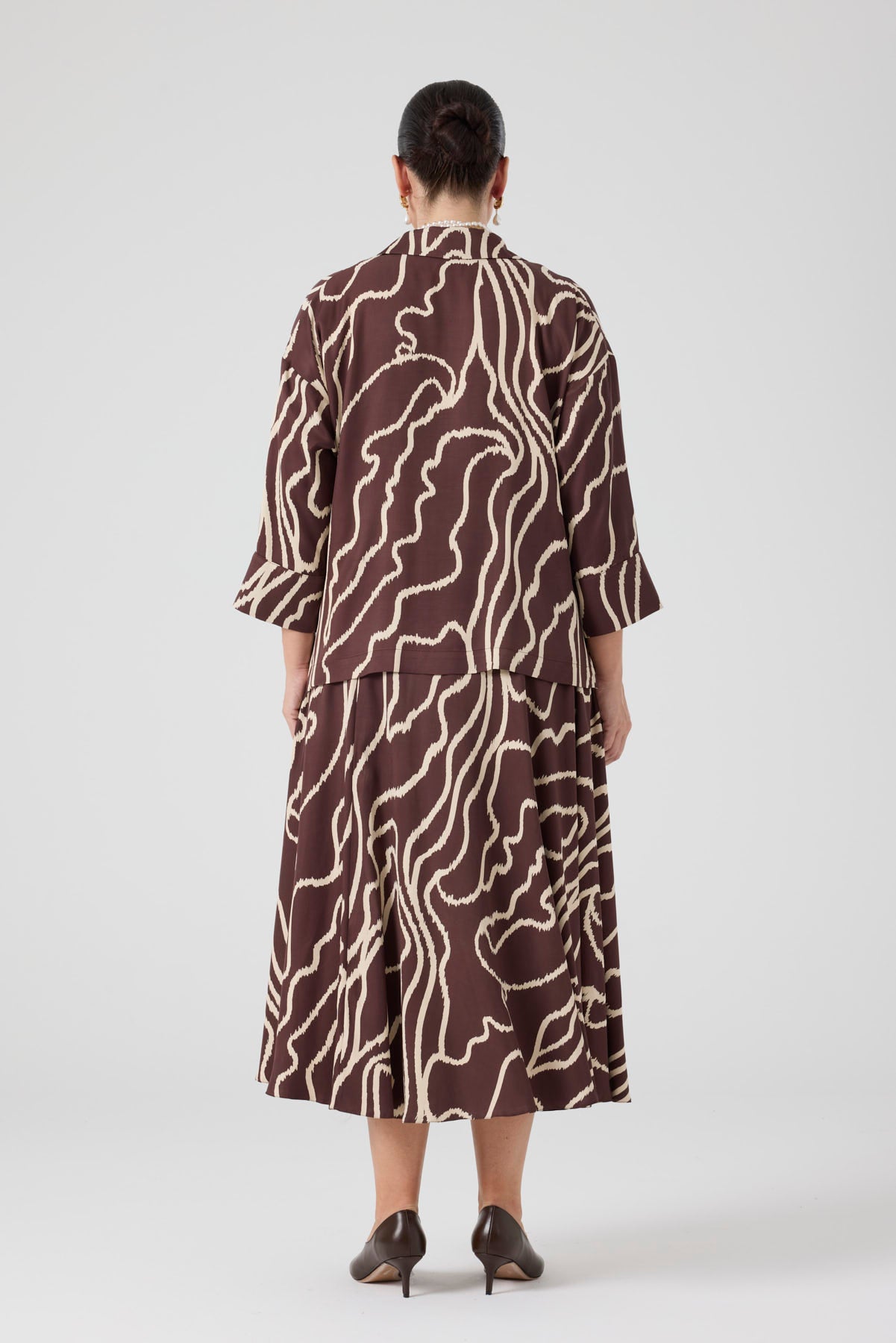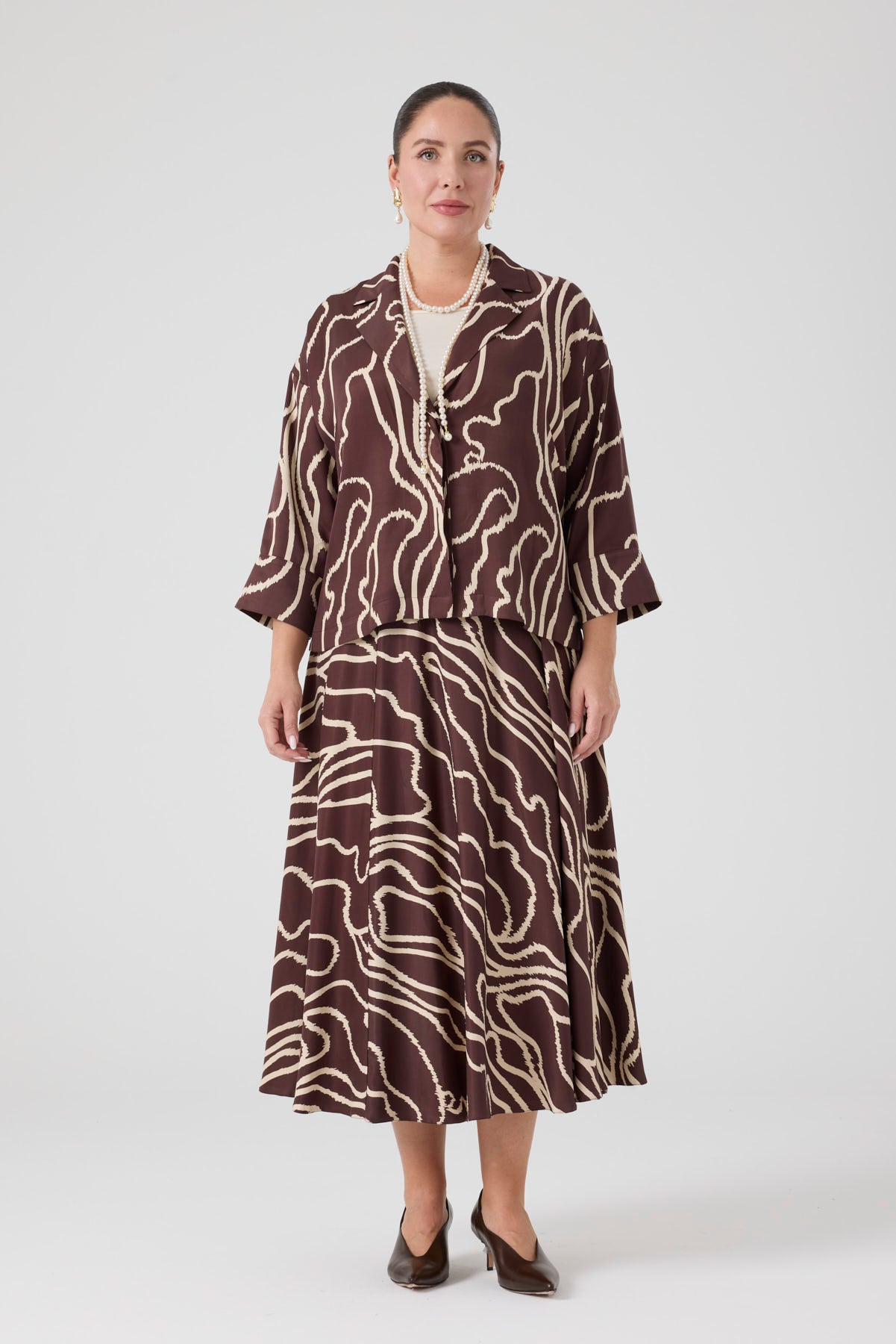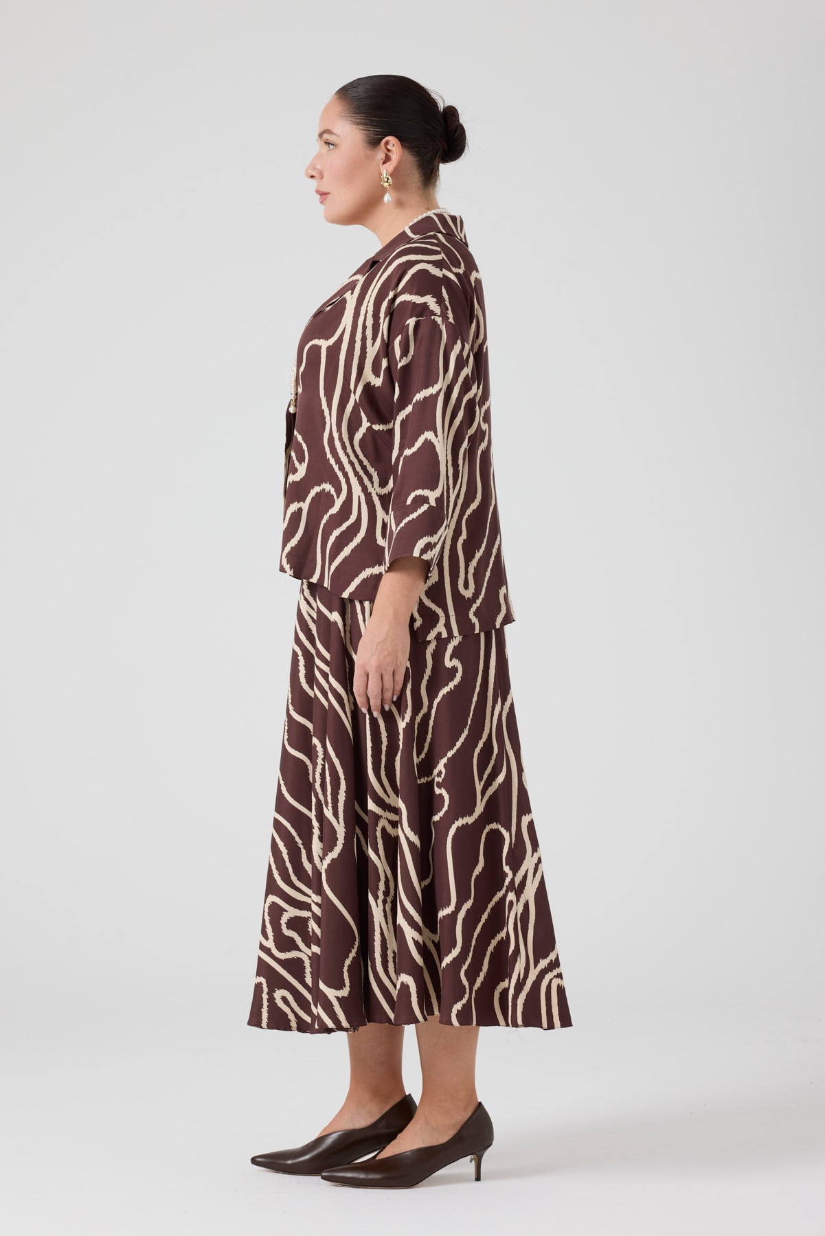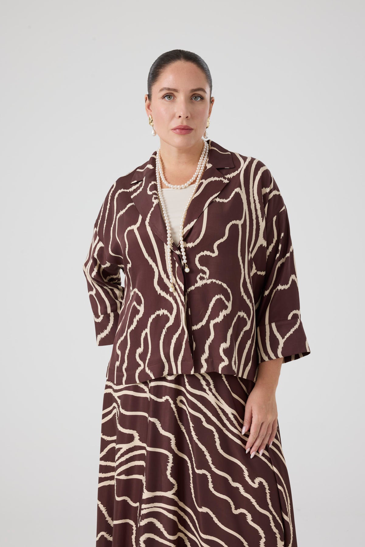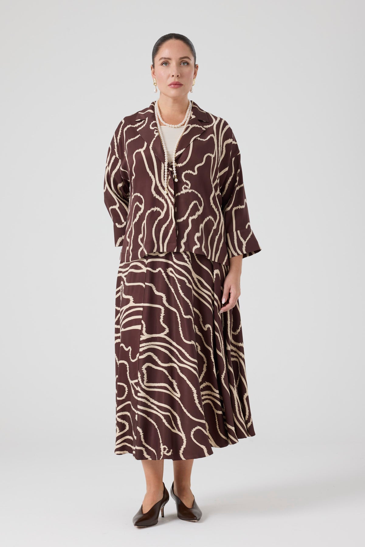 Ceket ve etek floş viskon kumaştan üretilmiştir.