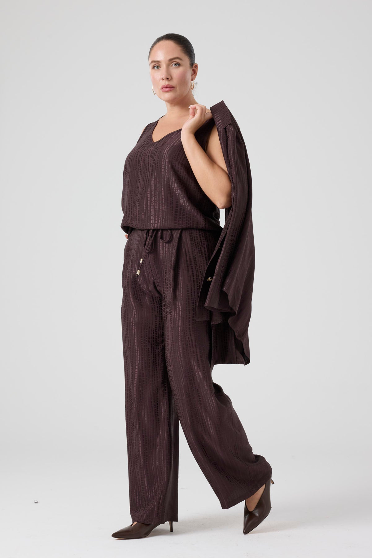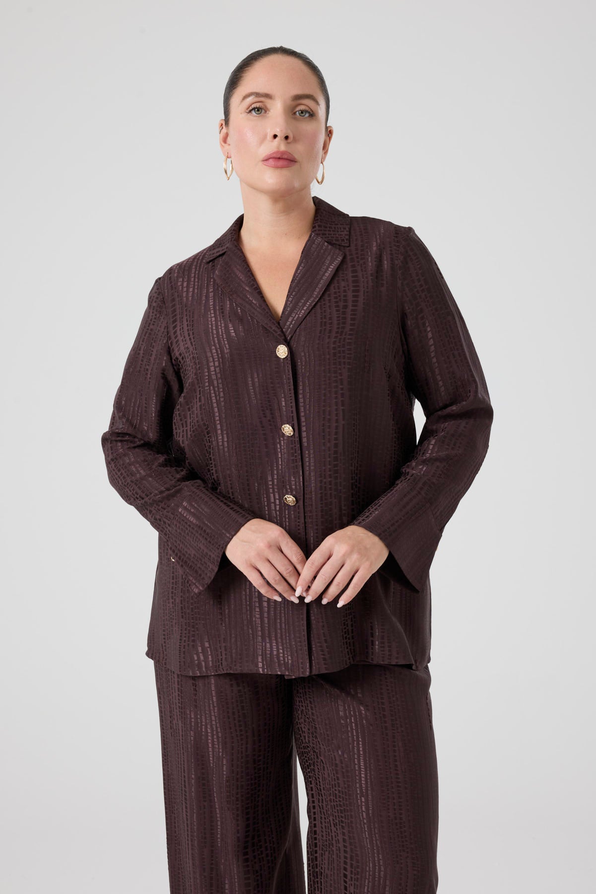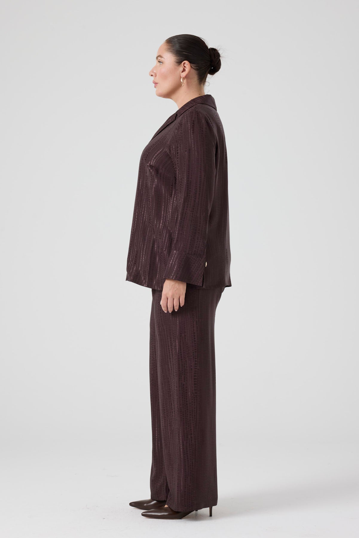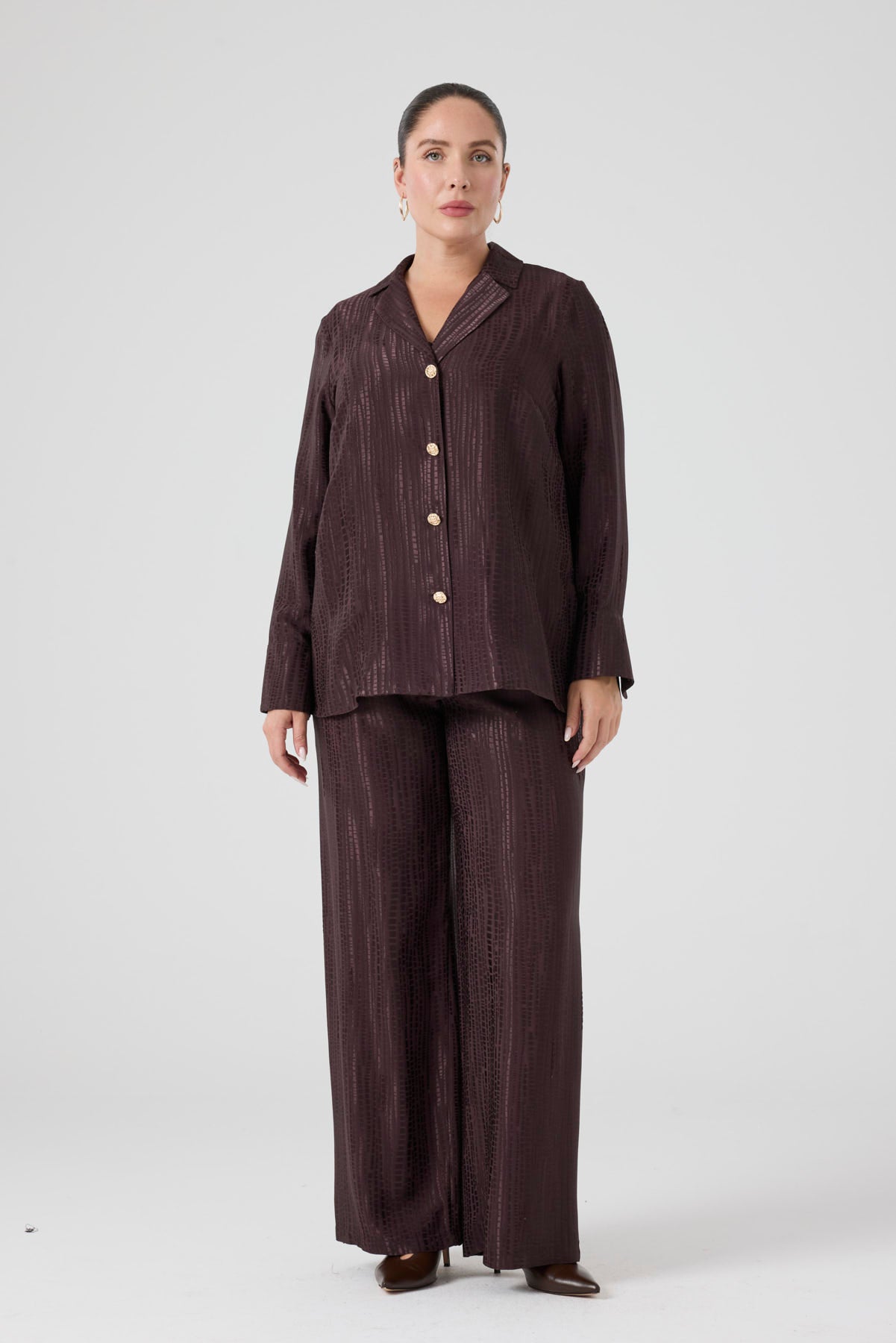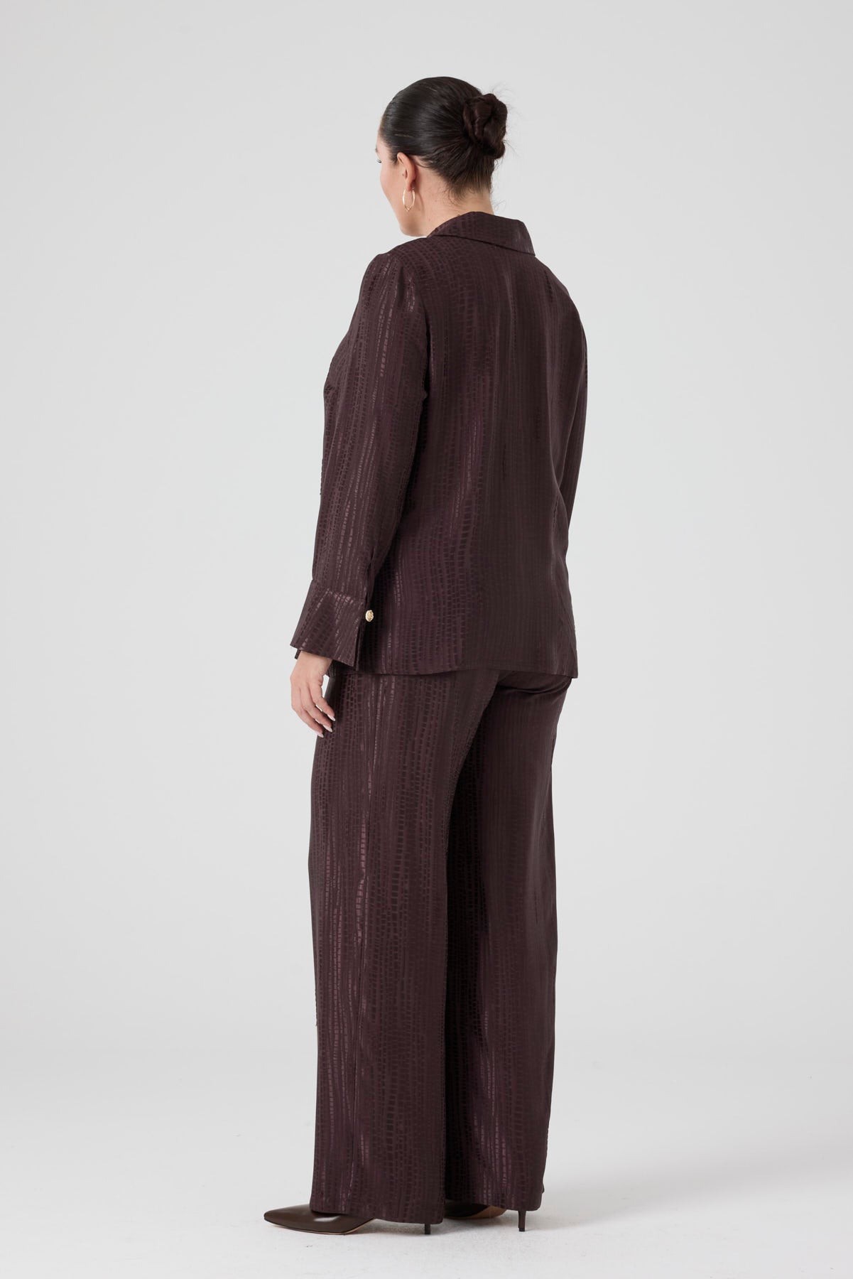 Jakarlı Floş Viskon Üçlü Takım Kahve