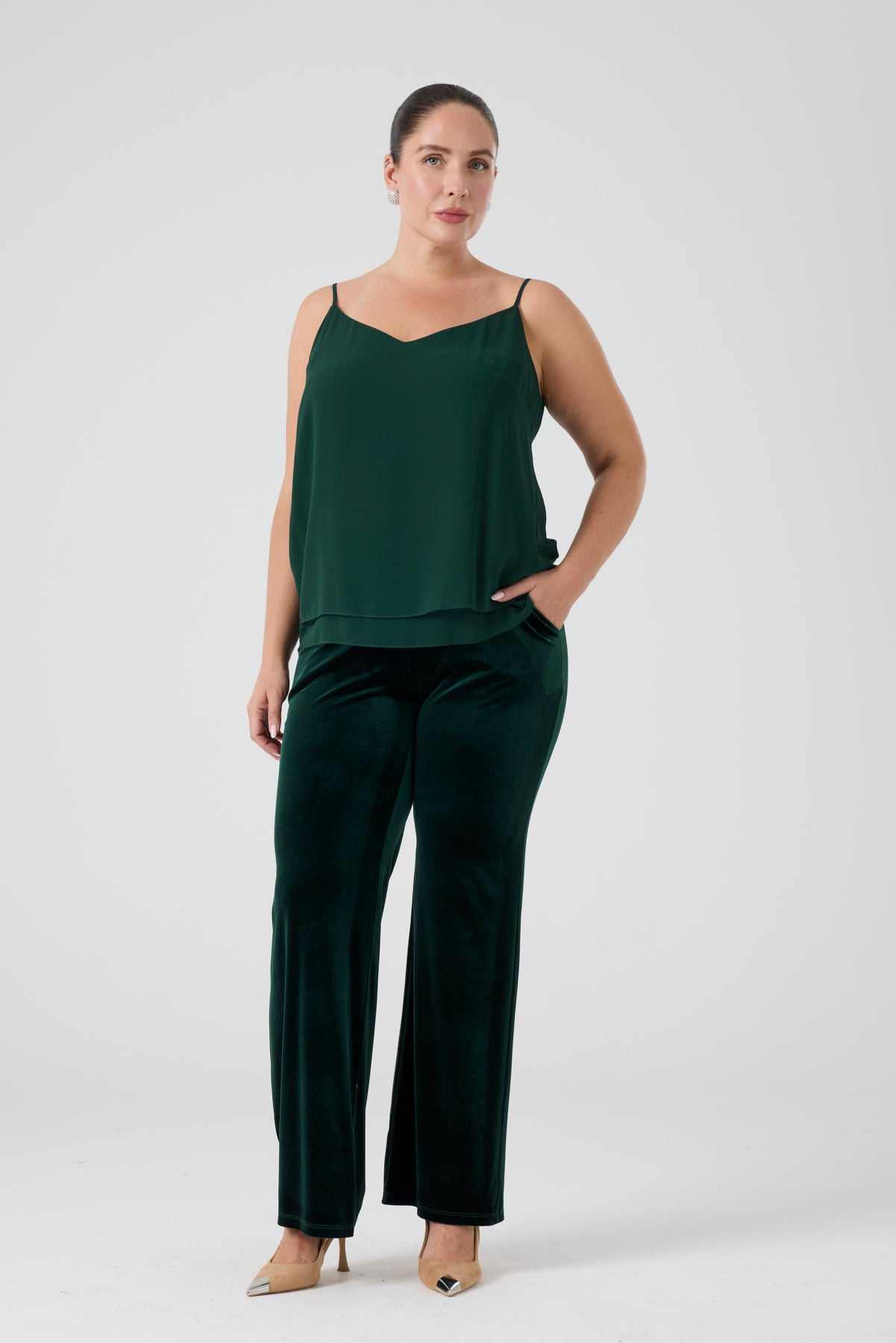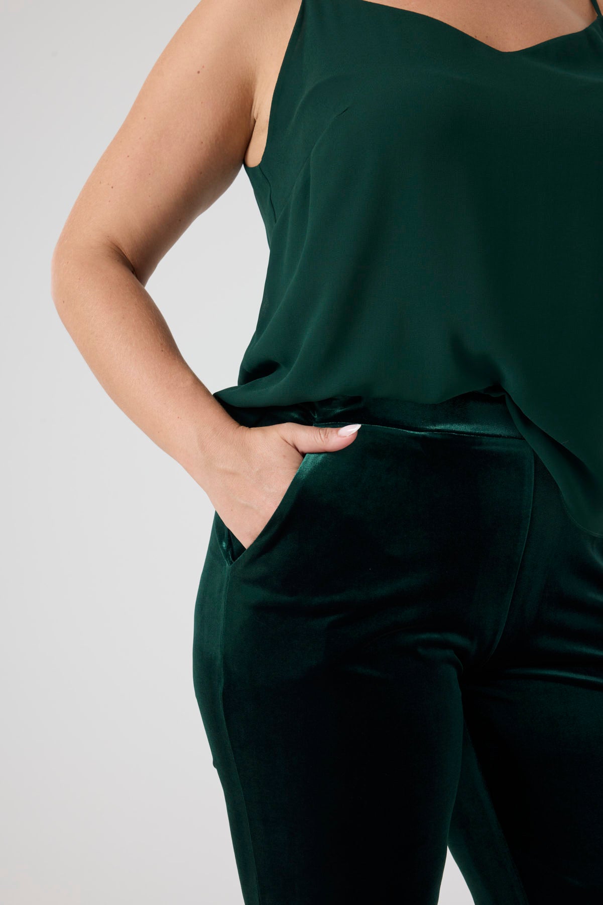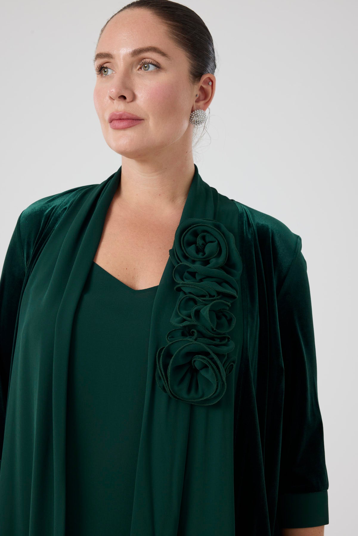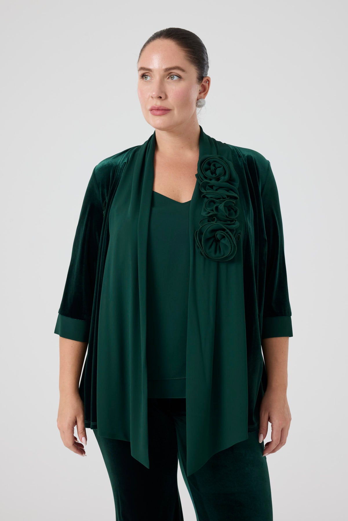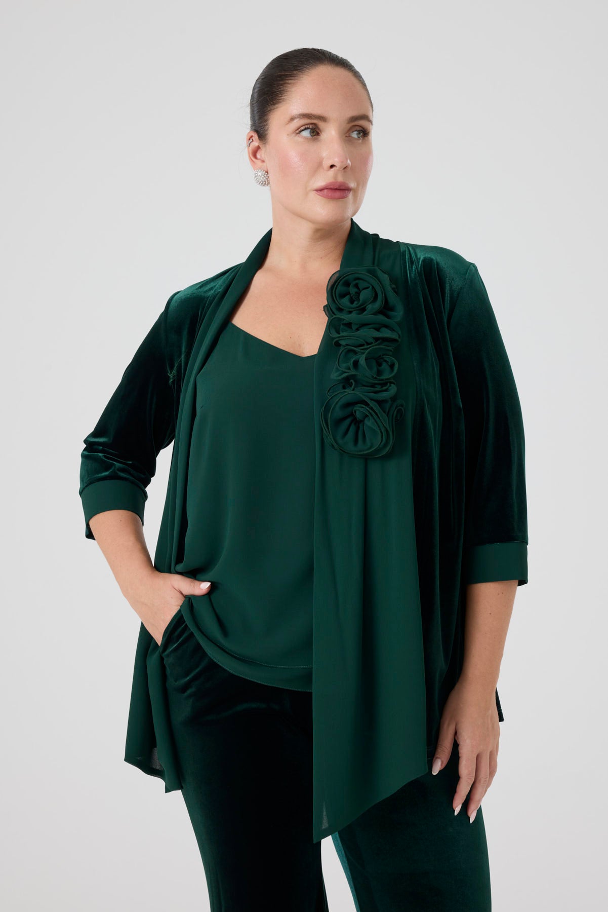 Şifon Garnili Burgu Çiçek Detaylı Ceket Kadife Pantolon 3'lü Takım - Zümrüt