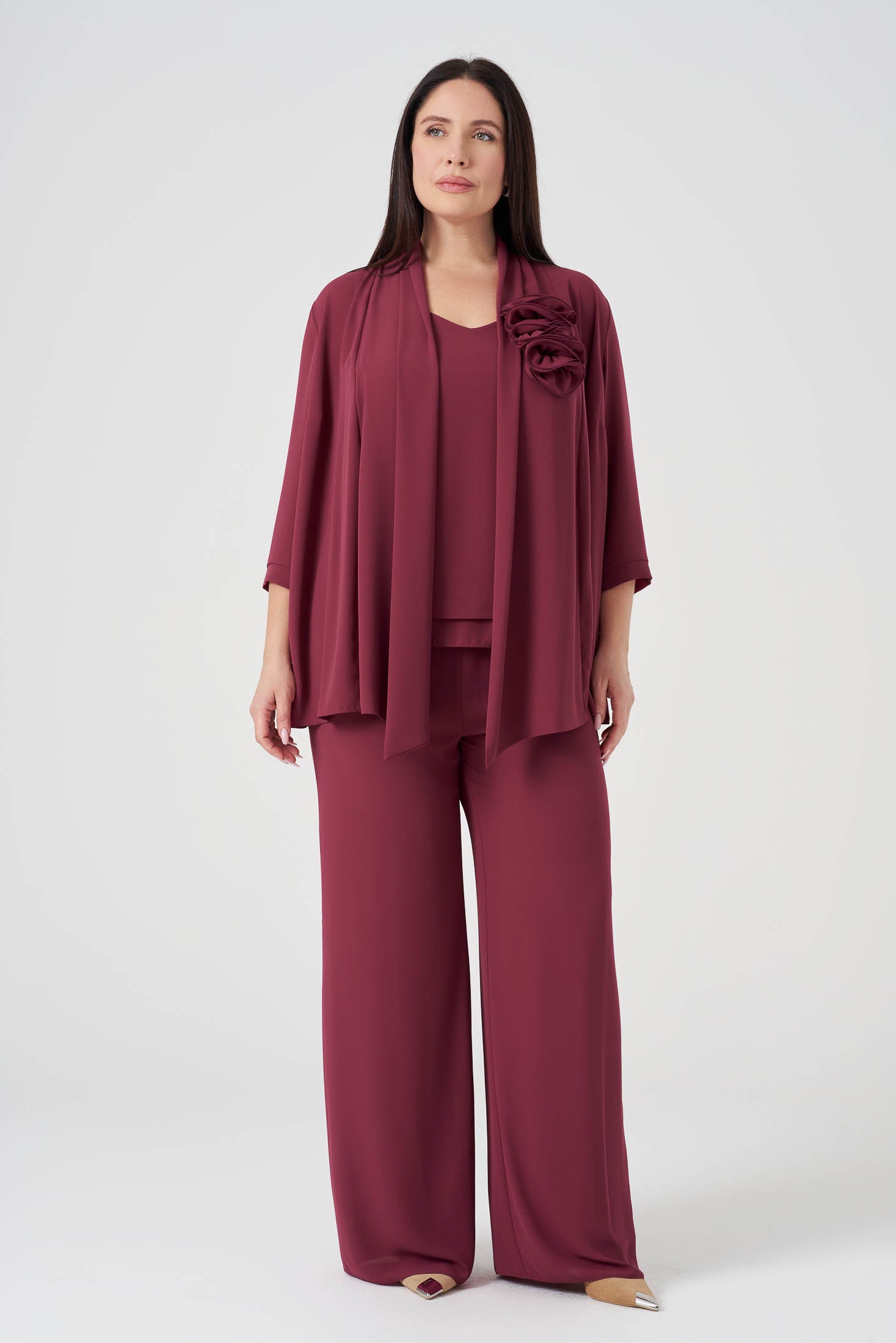 Çiçek Detaylı Ceket Atlet Pantolon 3'lü Takım - Kahve
