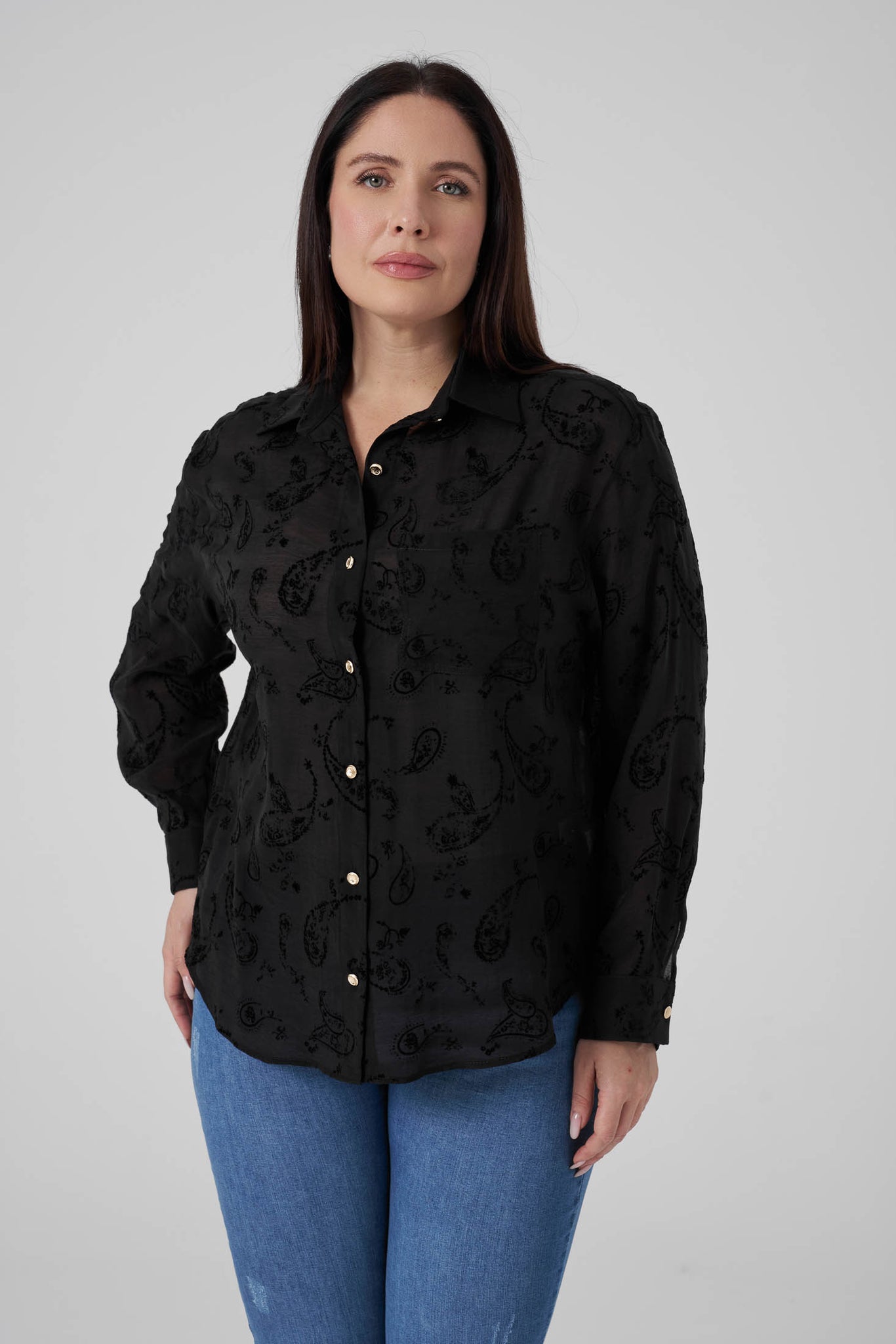 Floklu Gömlek Siyah