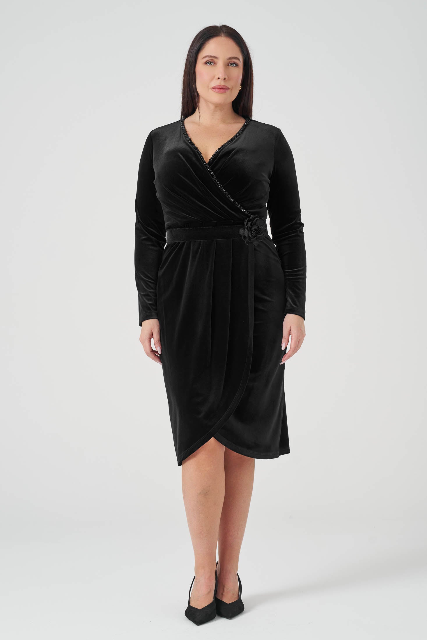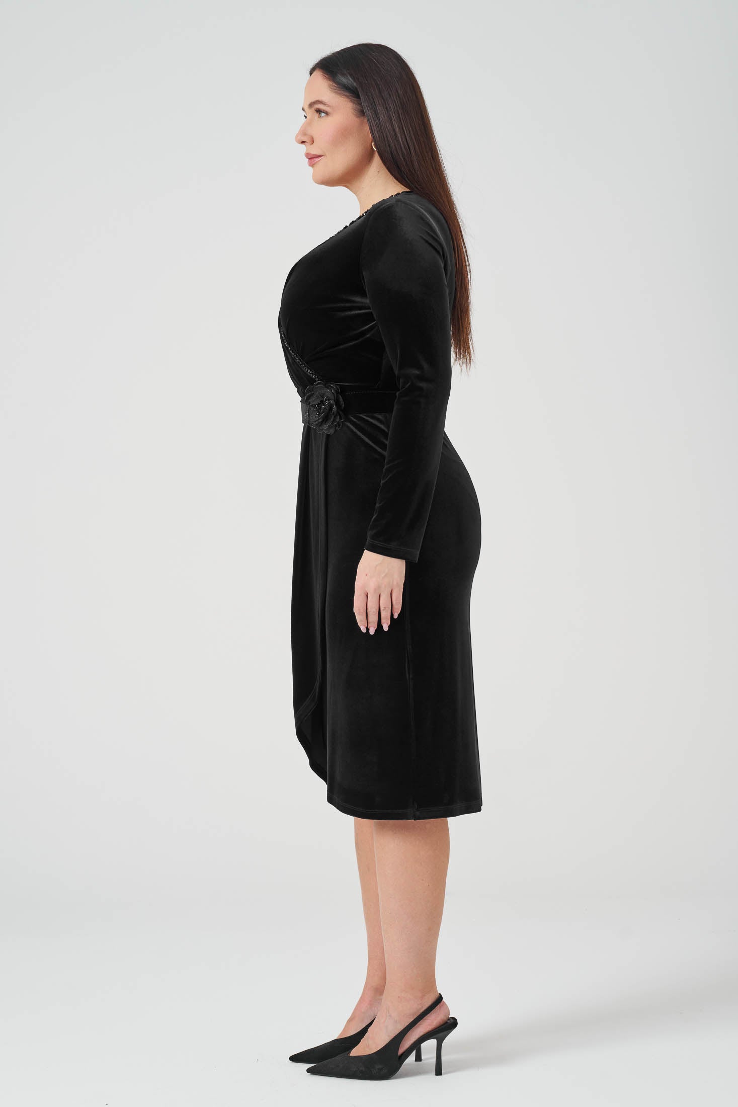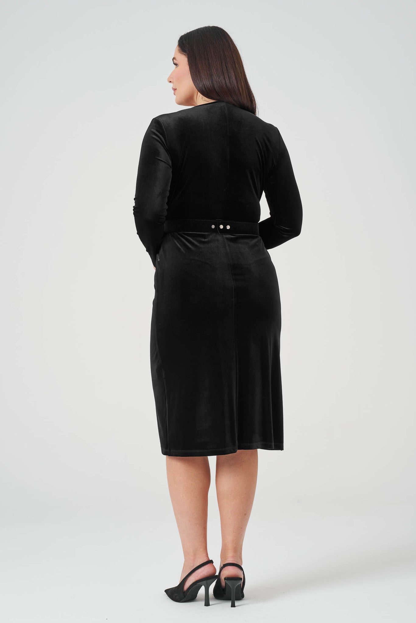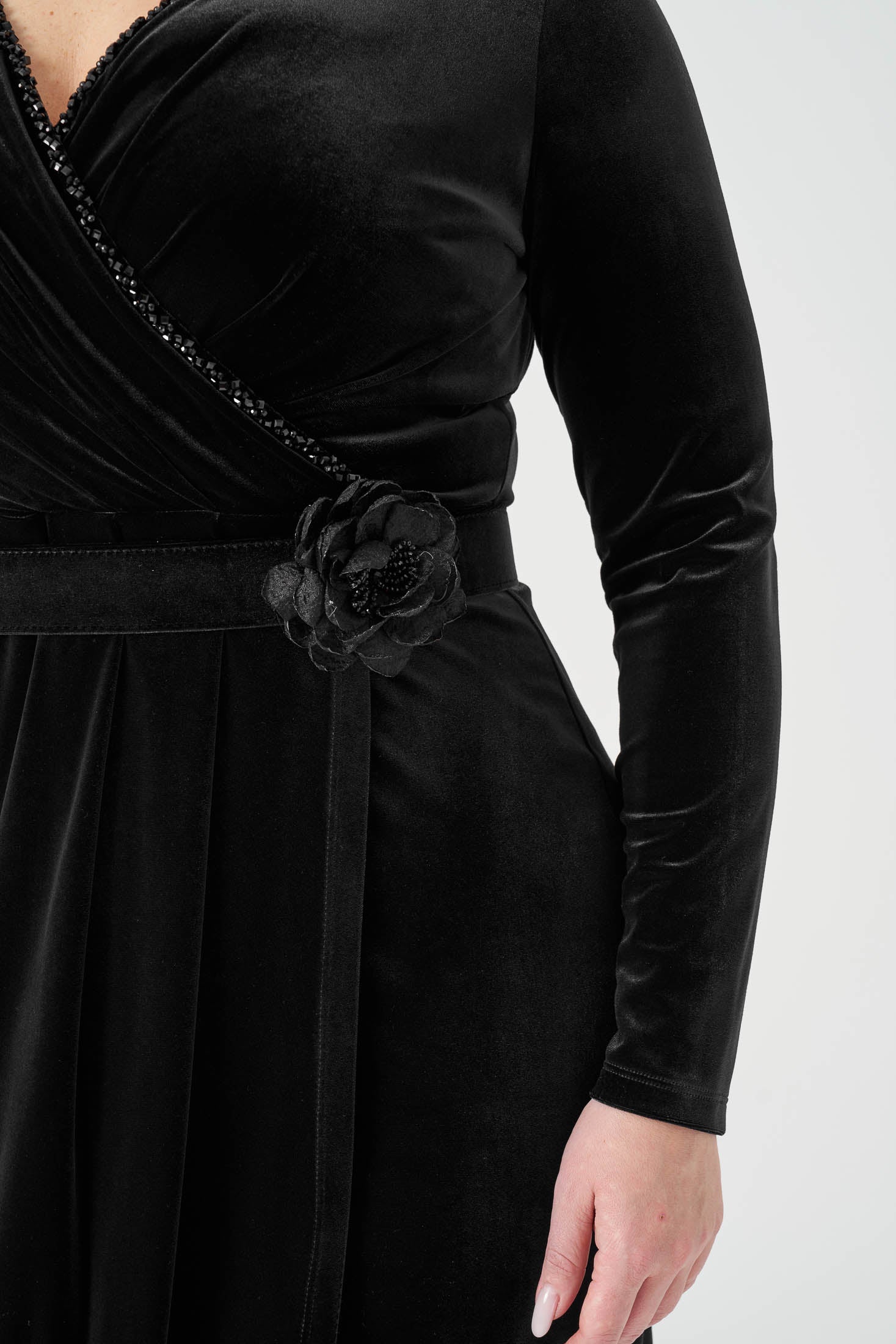 Kruvaze Kemerli Kadife Elbise Siyah