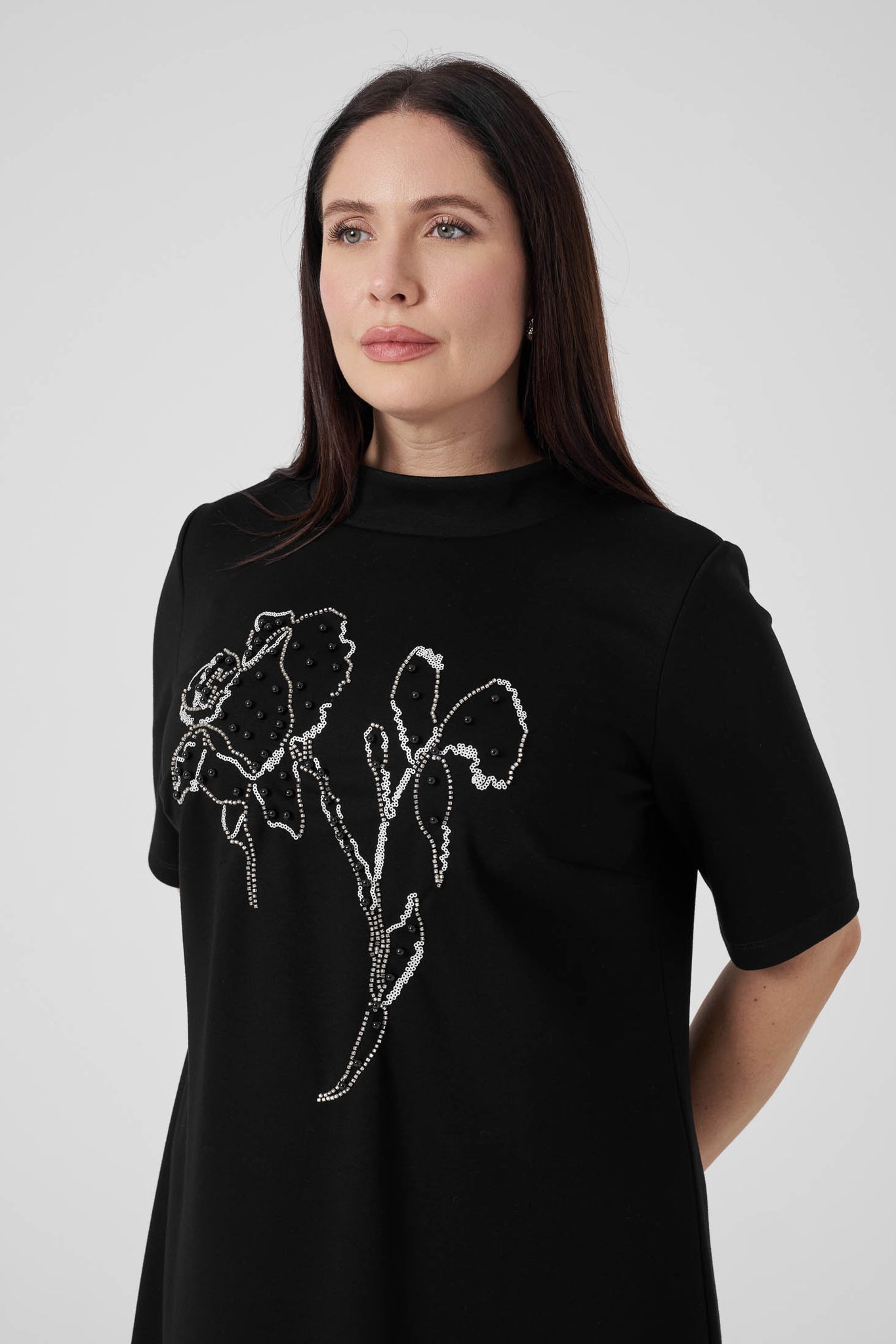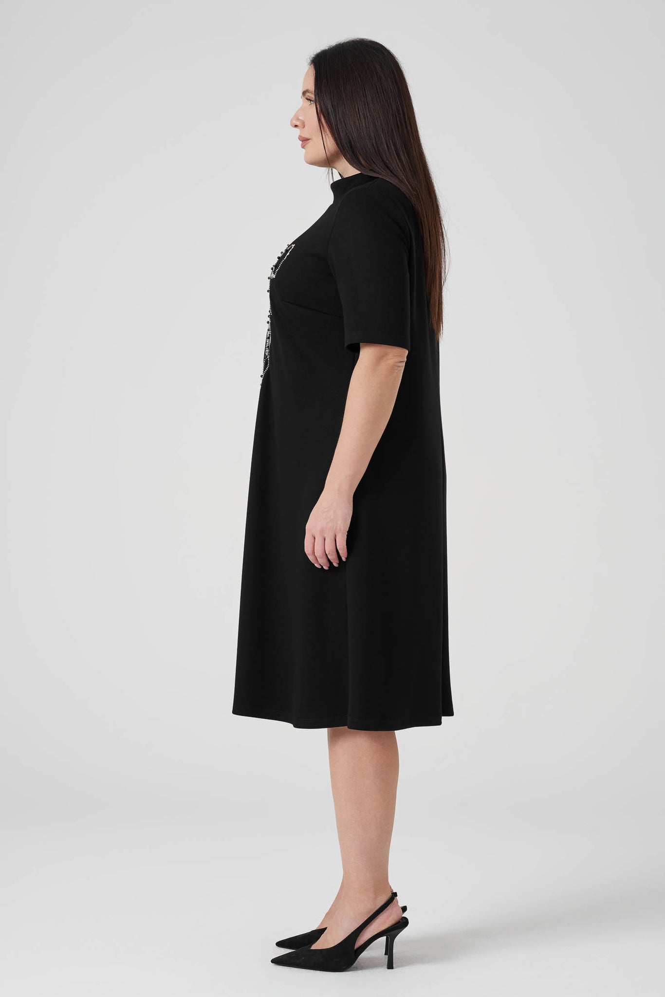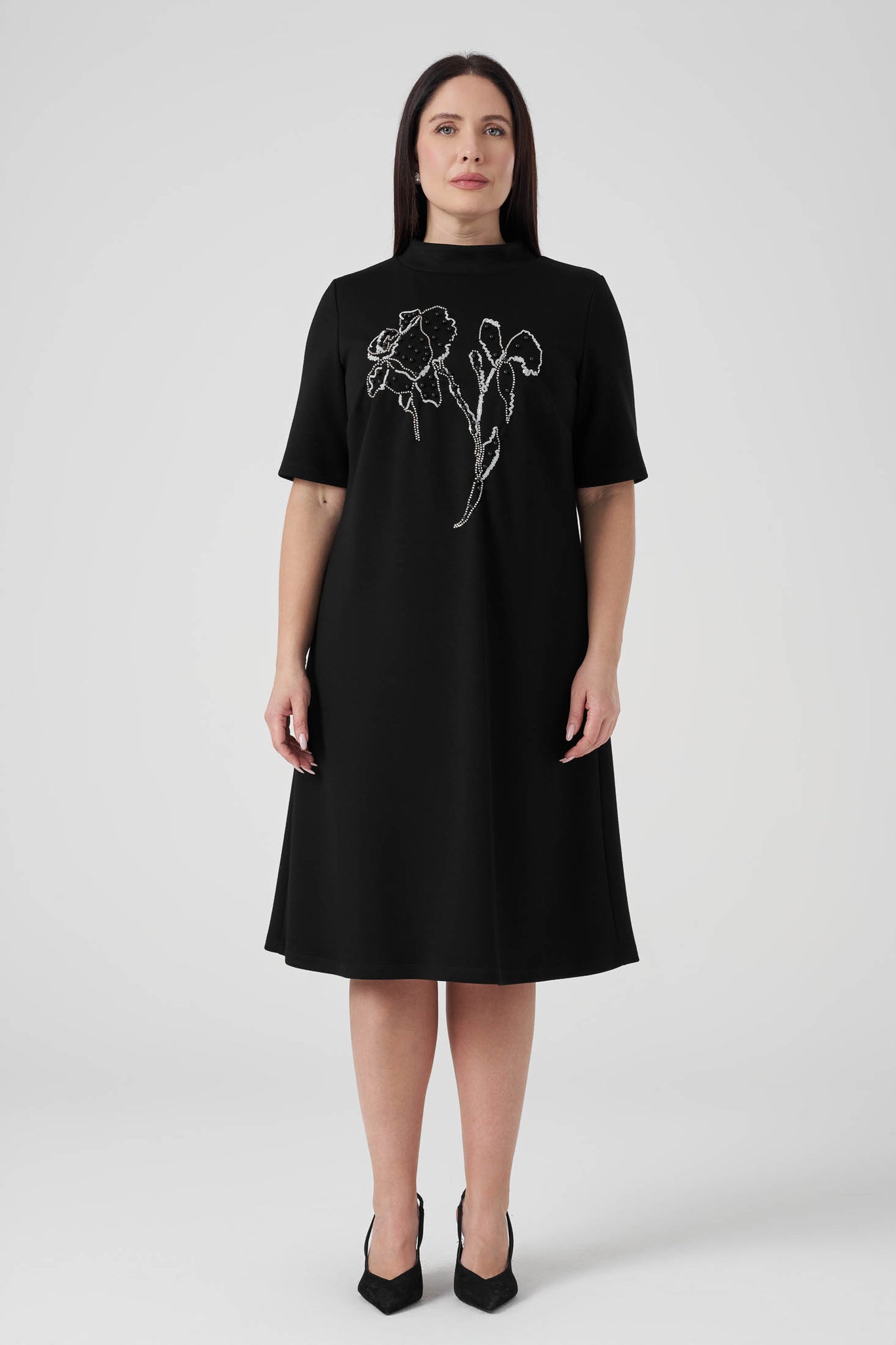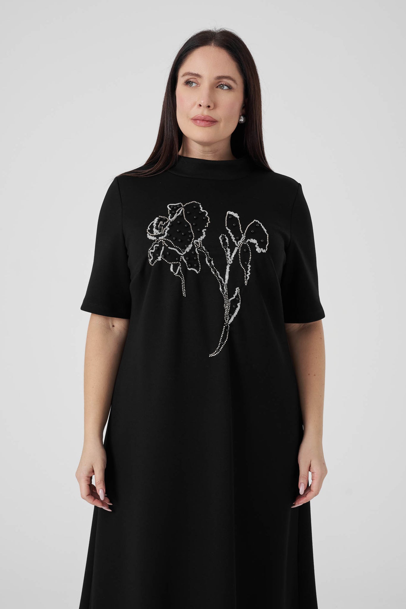 Nakışlı Örme Elbise Siyah