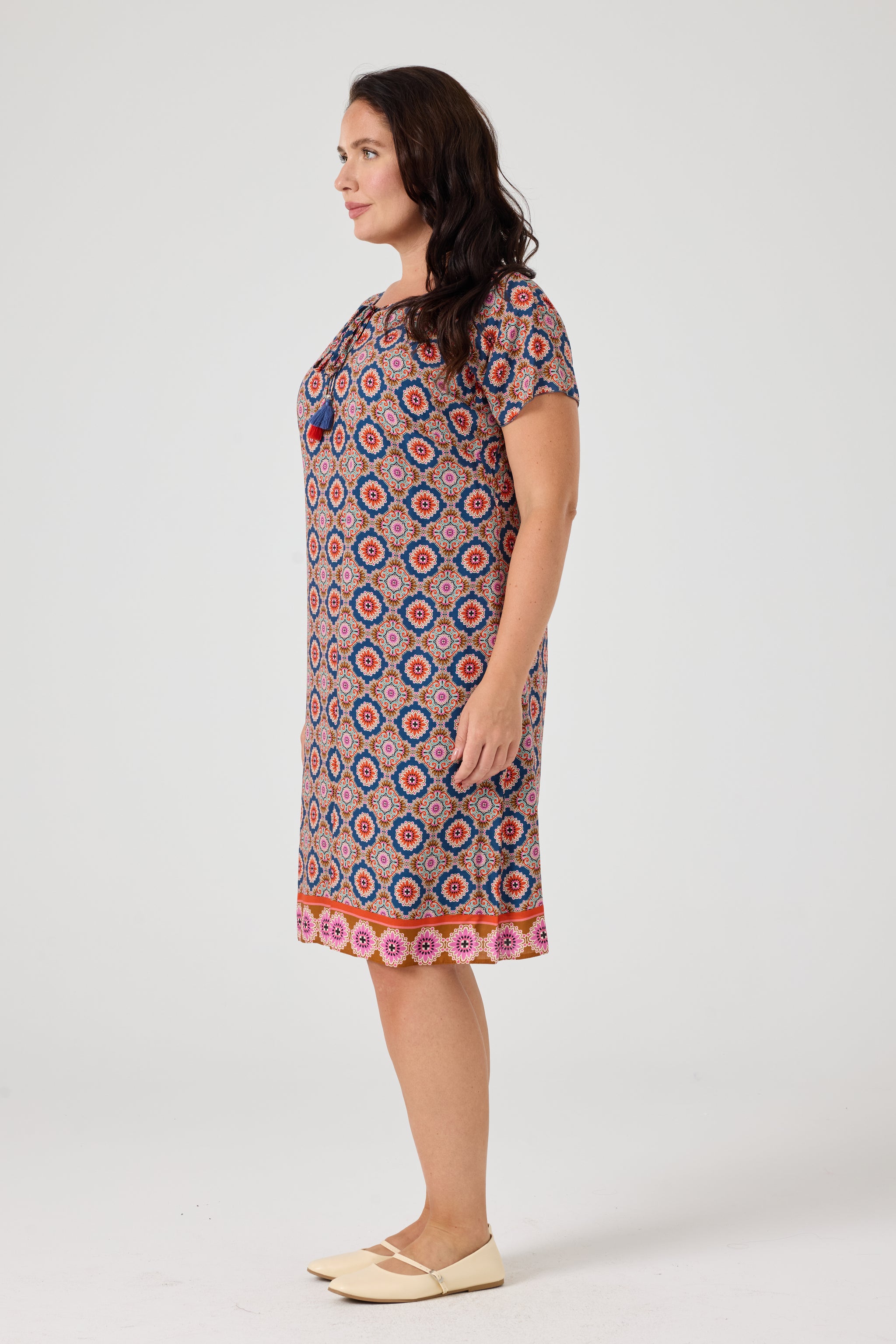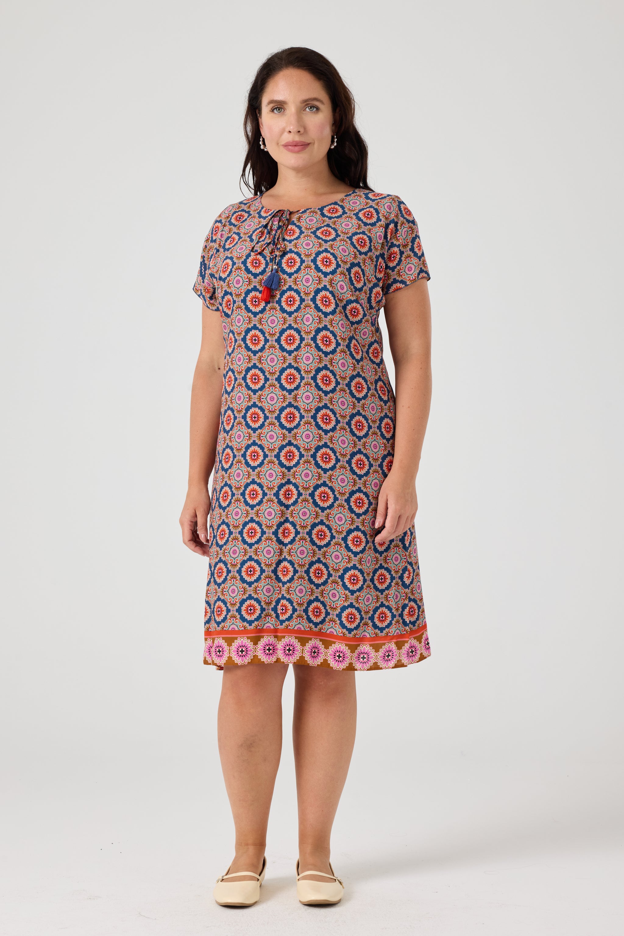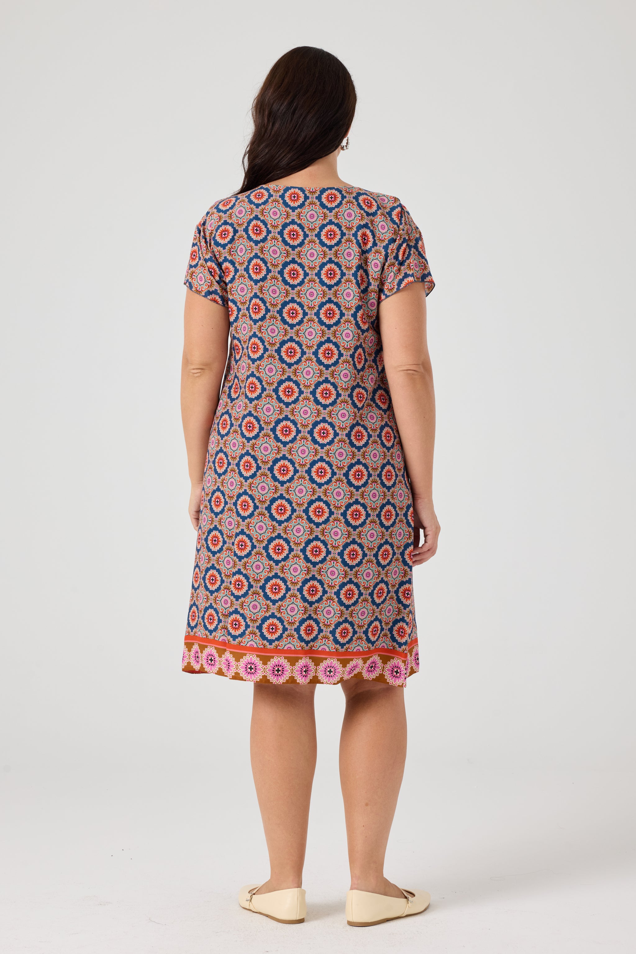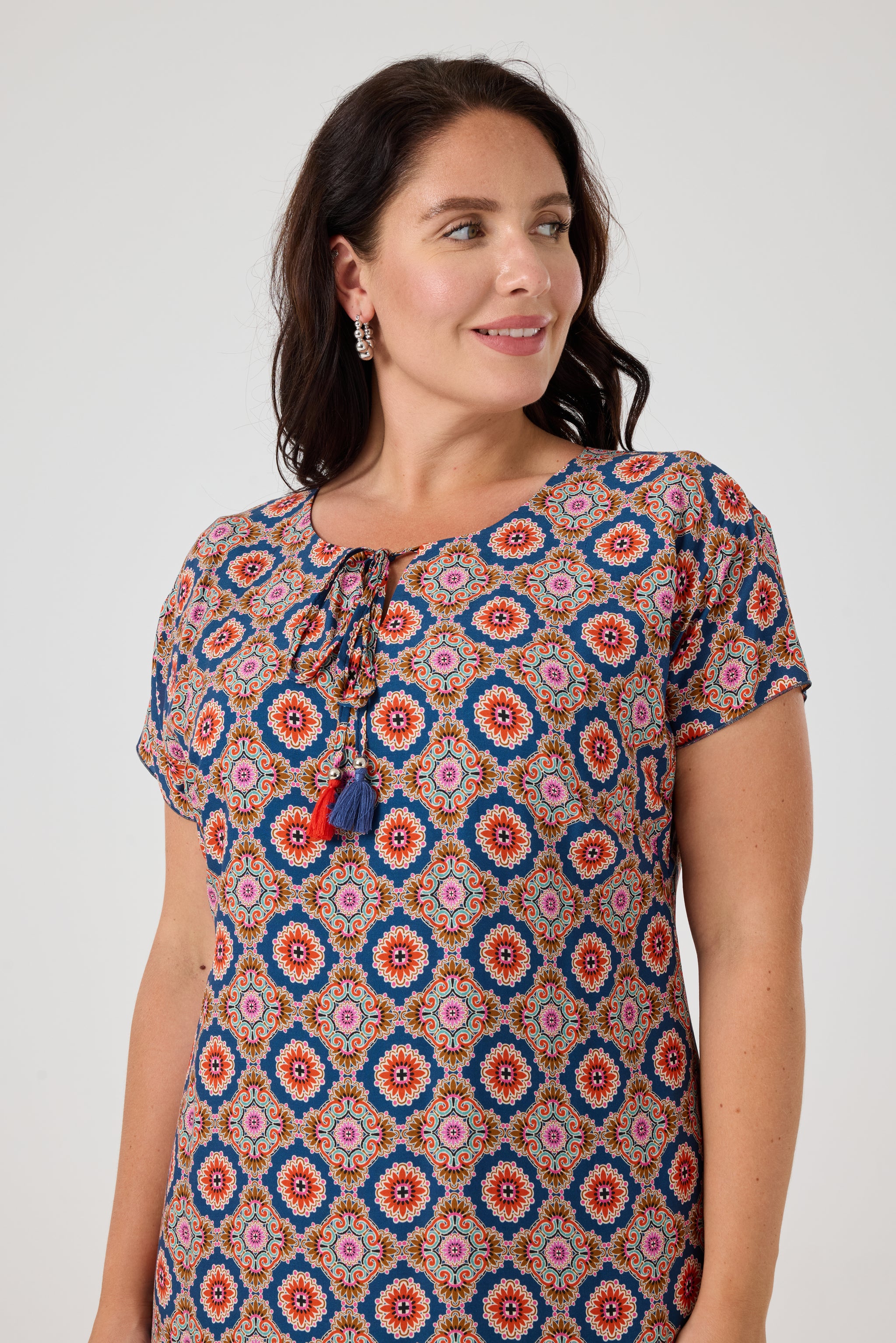 Desenli Viskon Elbise İndigo