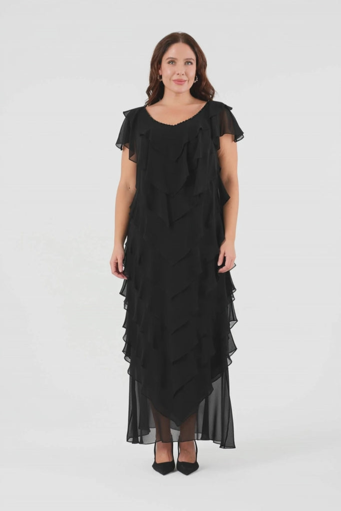 Fırfırlı Katlı Elbise - Siyah