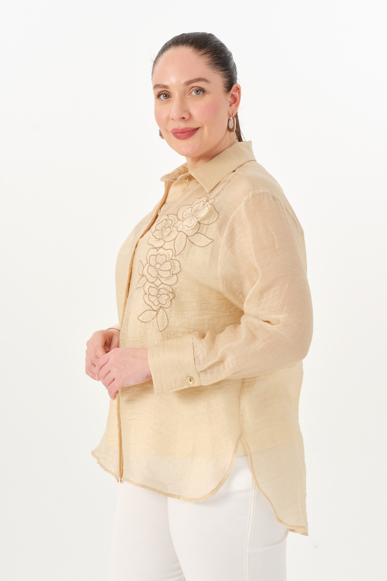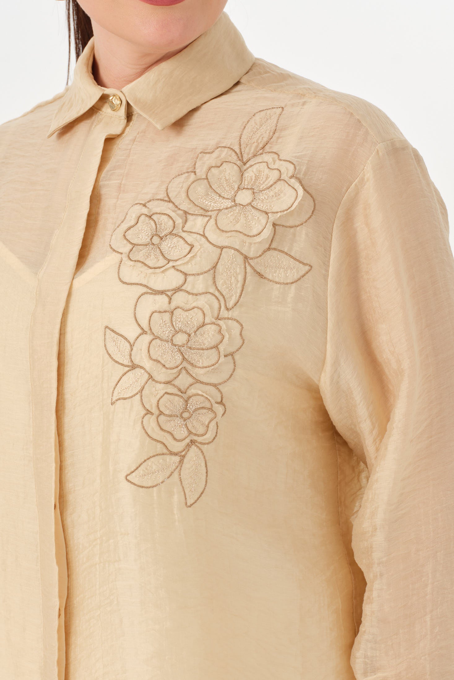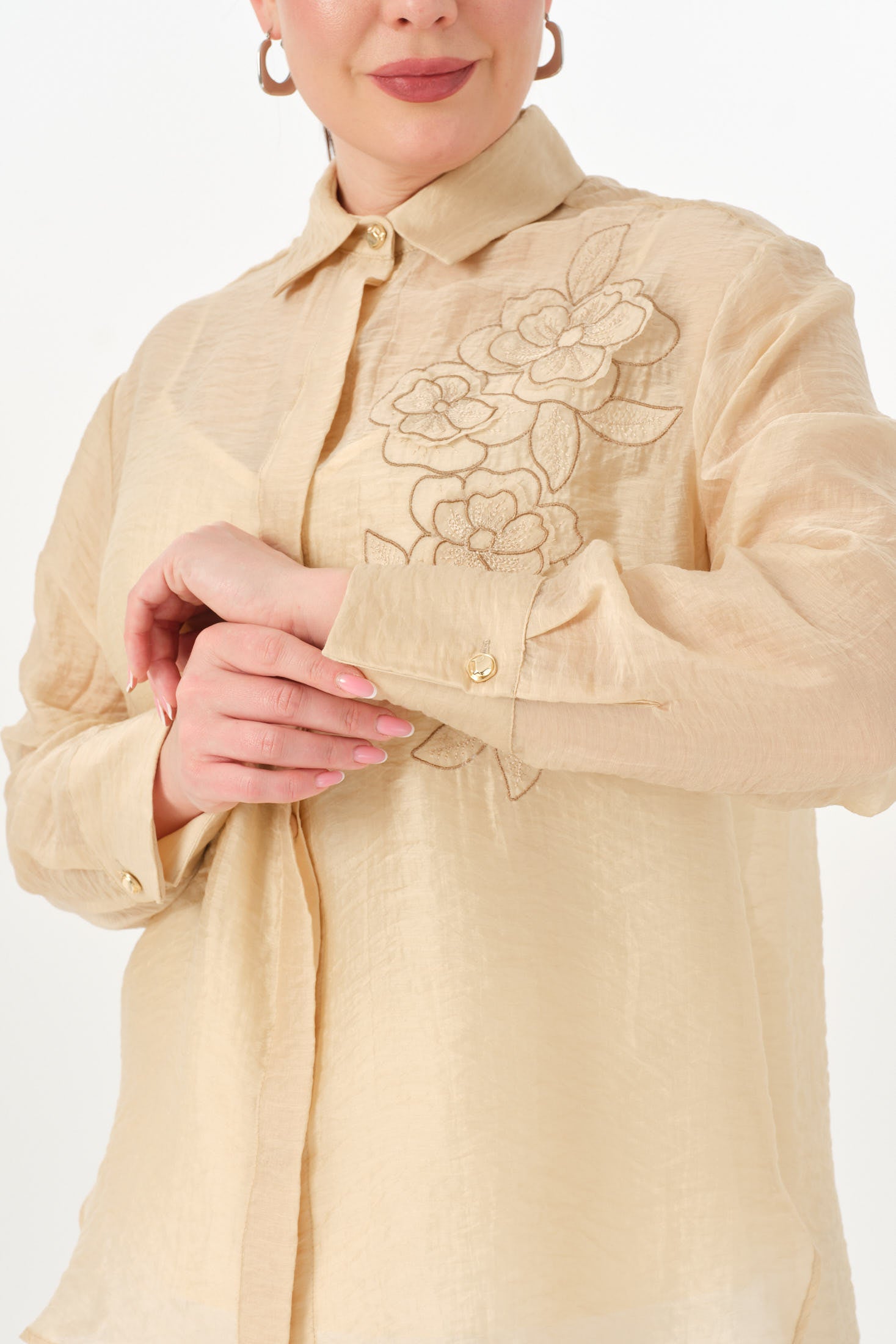 Nakışlı İnce Tensel Gömlek Tereyağ