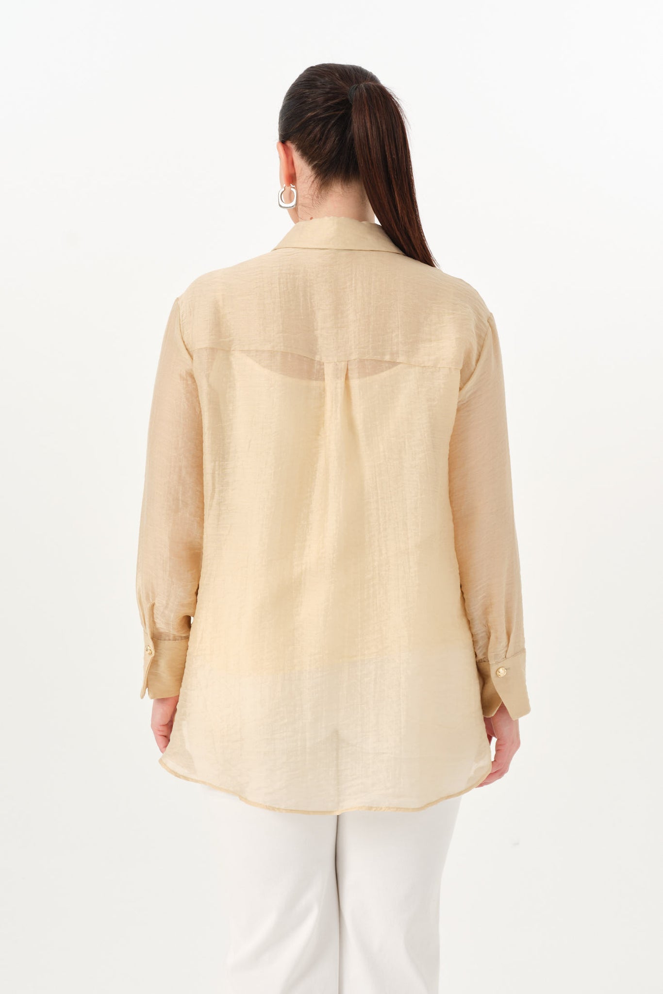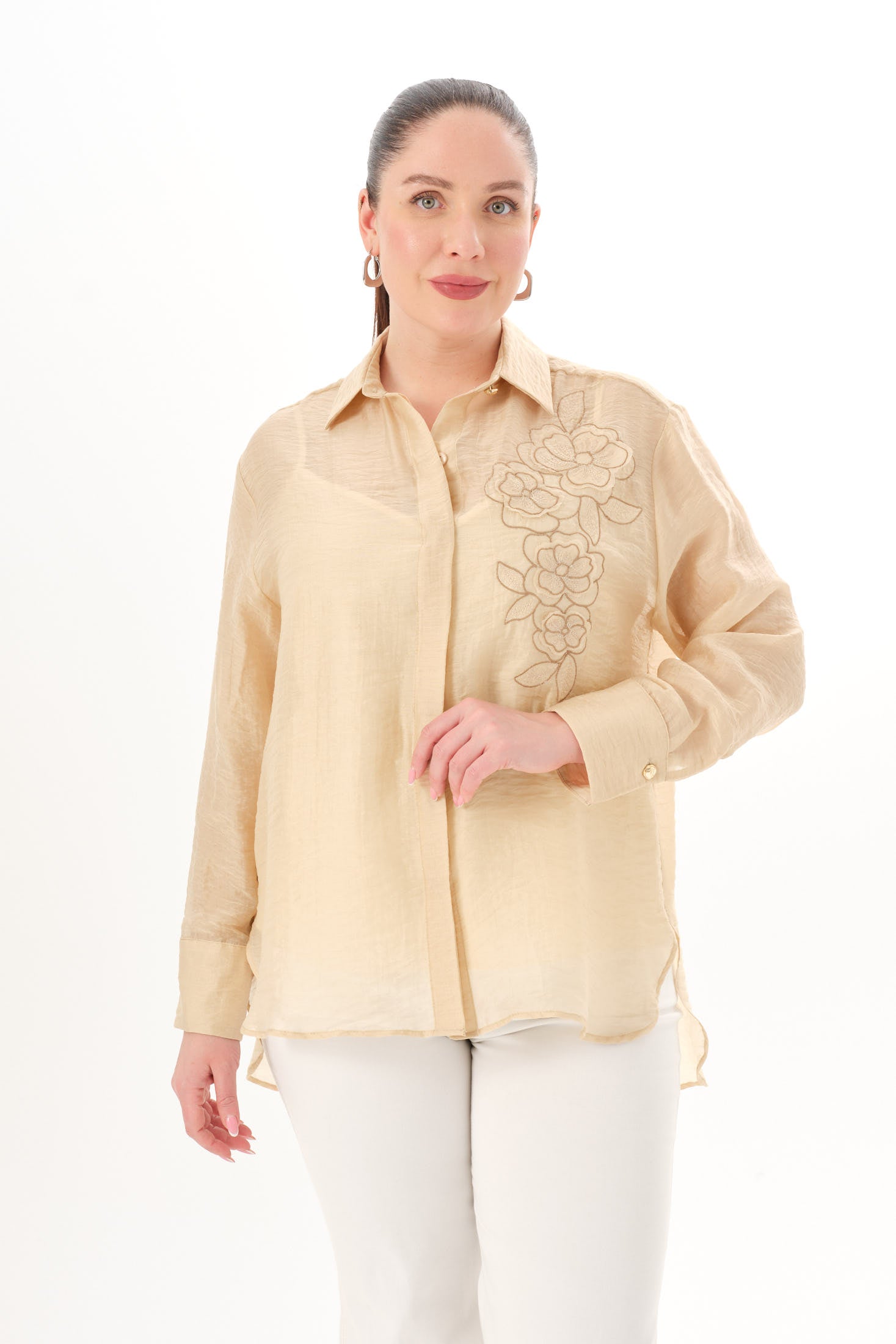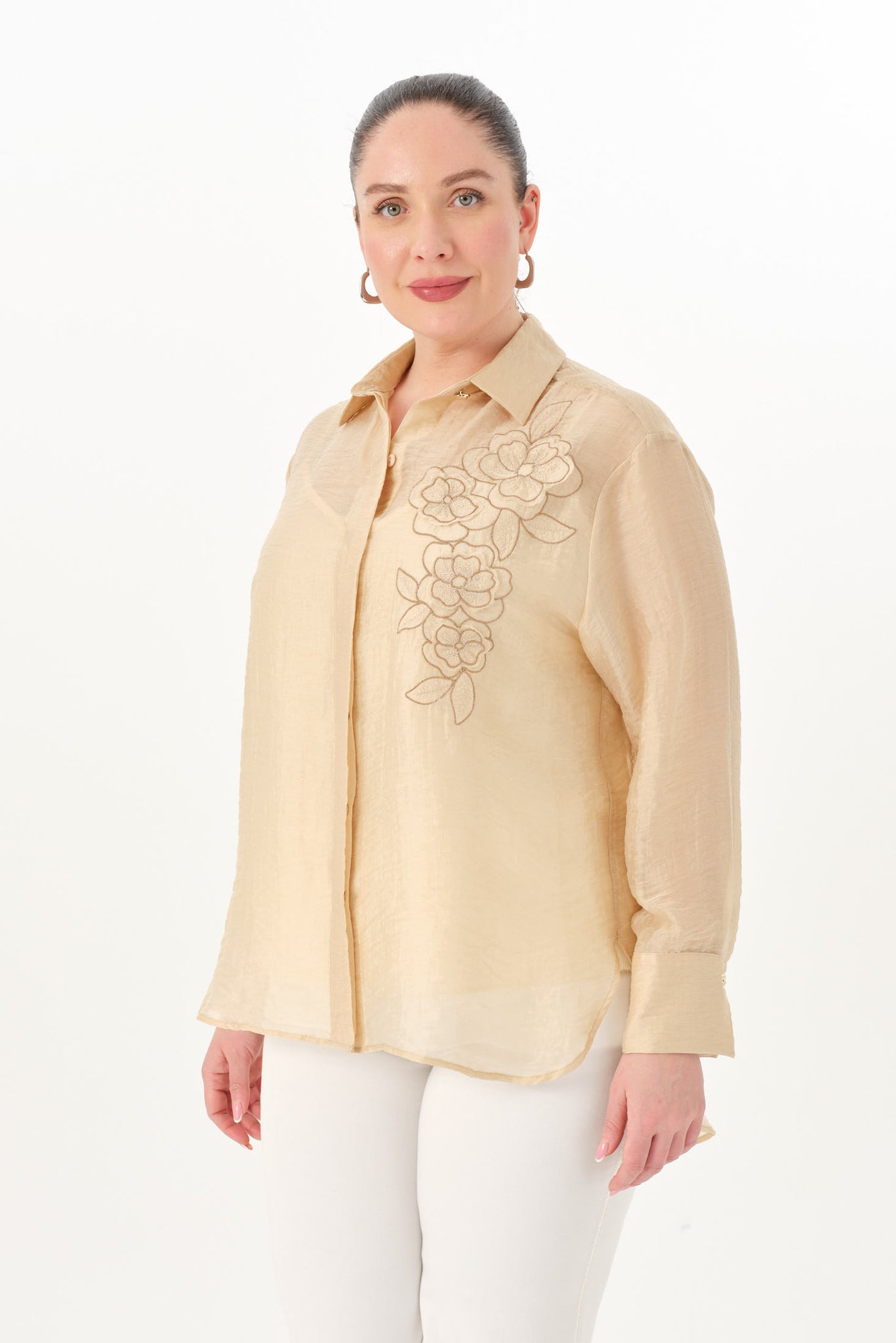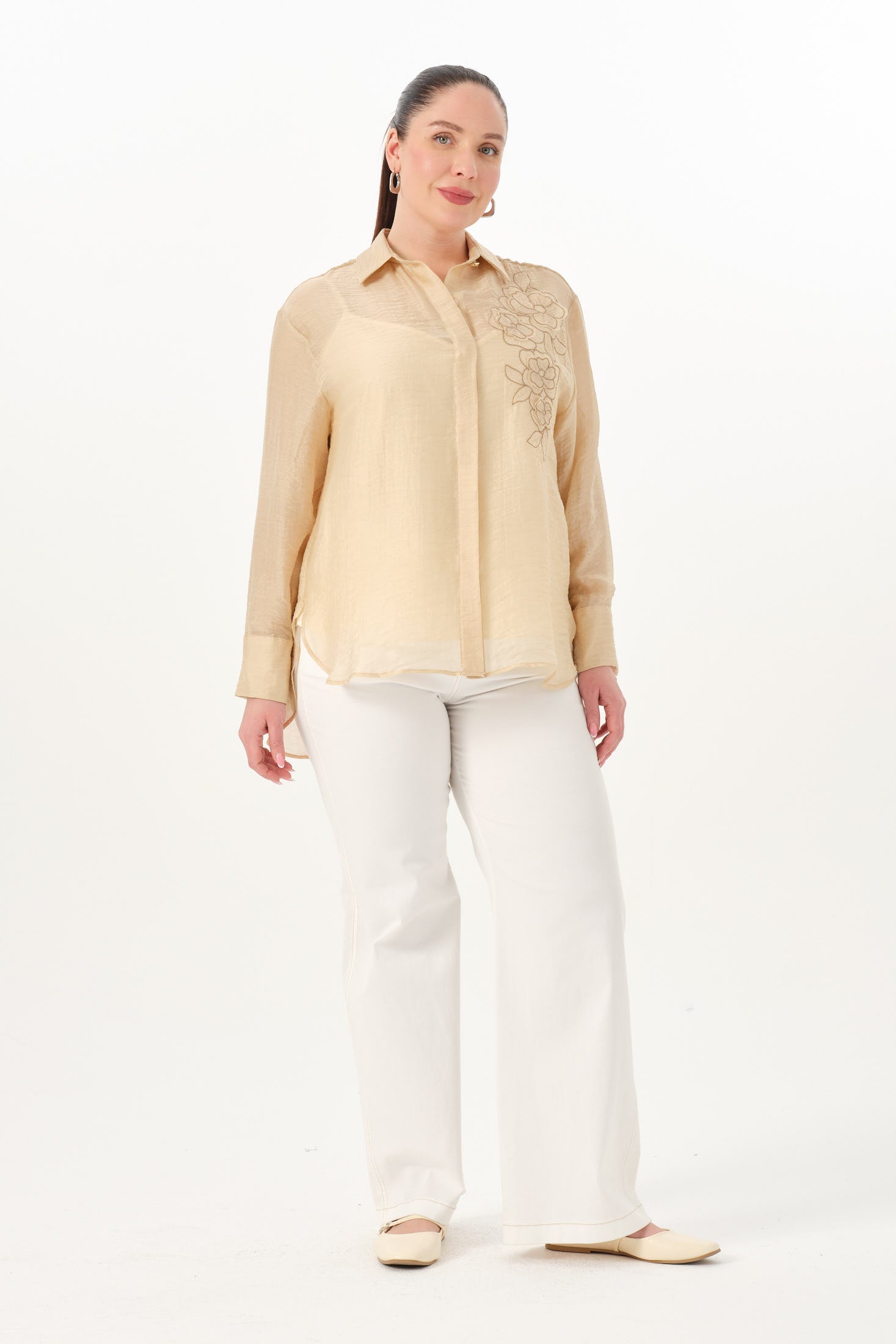 Nakışlı İnce Tensel Gömlek Tereyağ